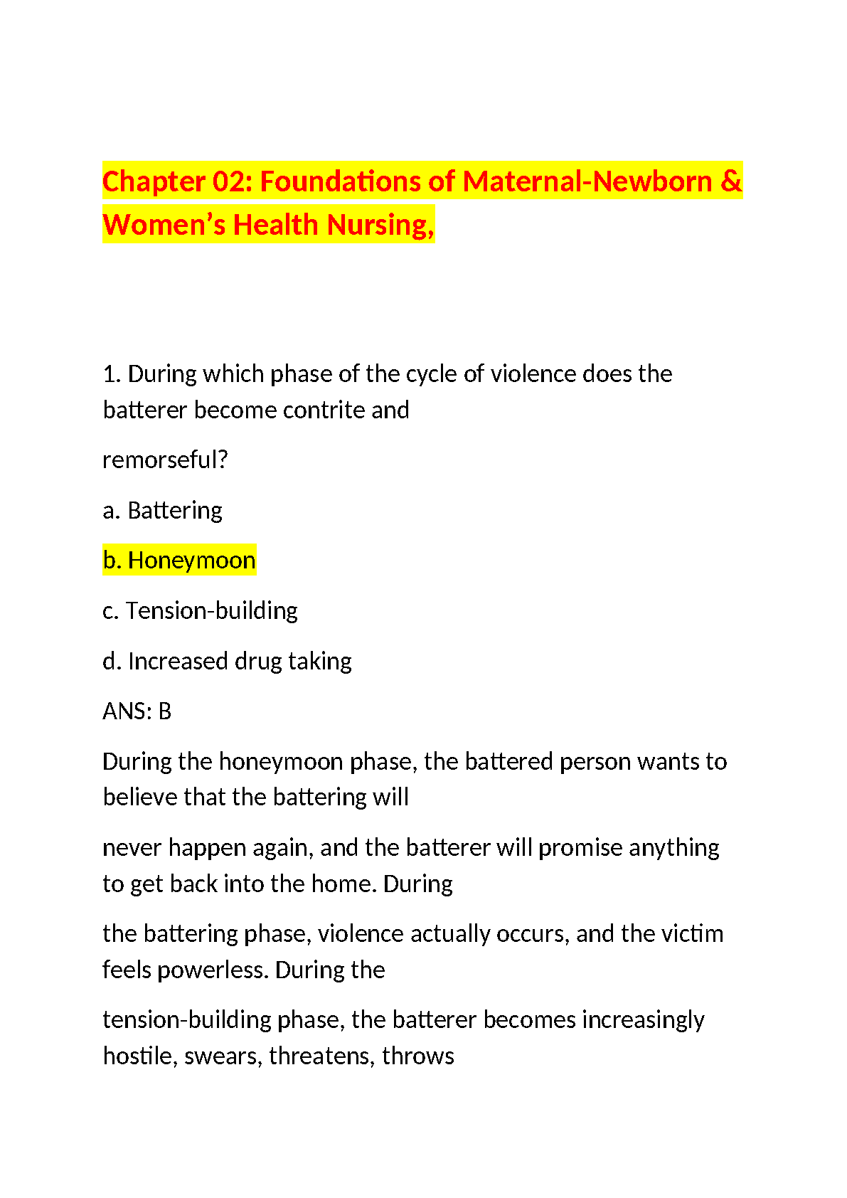 Master the critical concepts of Maternal-Newborn and Women's Health Nursing for the 2025/2026 academic year. This resource provides essential practice questions and detailed explanations to help you excel in your exams and avoid resits. Deepen your understanding of the cycle of violence and its impact on victims.
