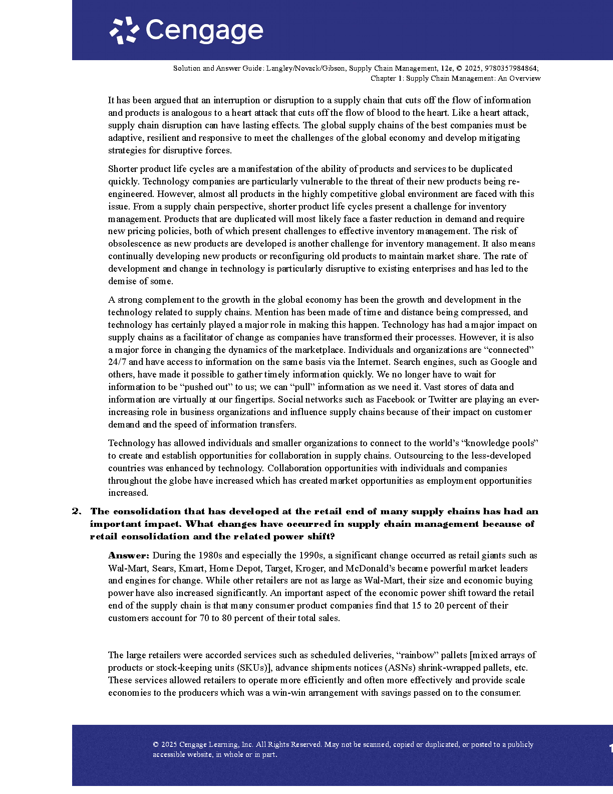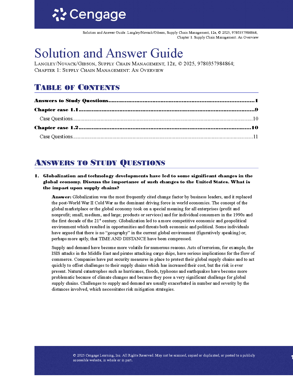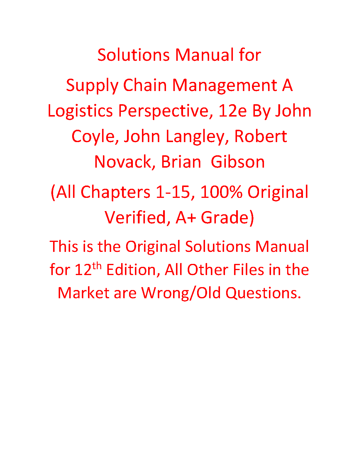 Official Solutions Manual for Supply Chain Management: A Logistics Perspective, 12th Edition by John J. Coyle, John J. Langley, Robert A. Novack, Brian J. Gibson