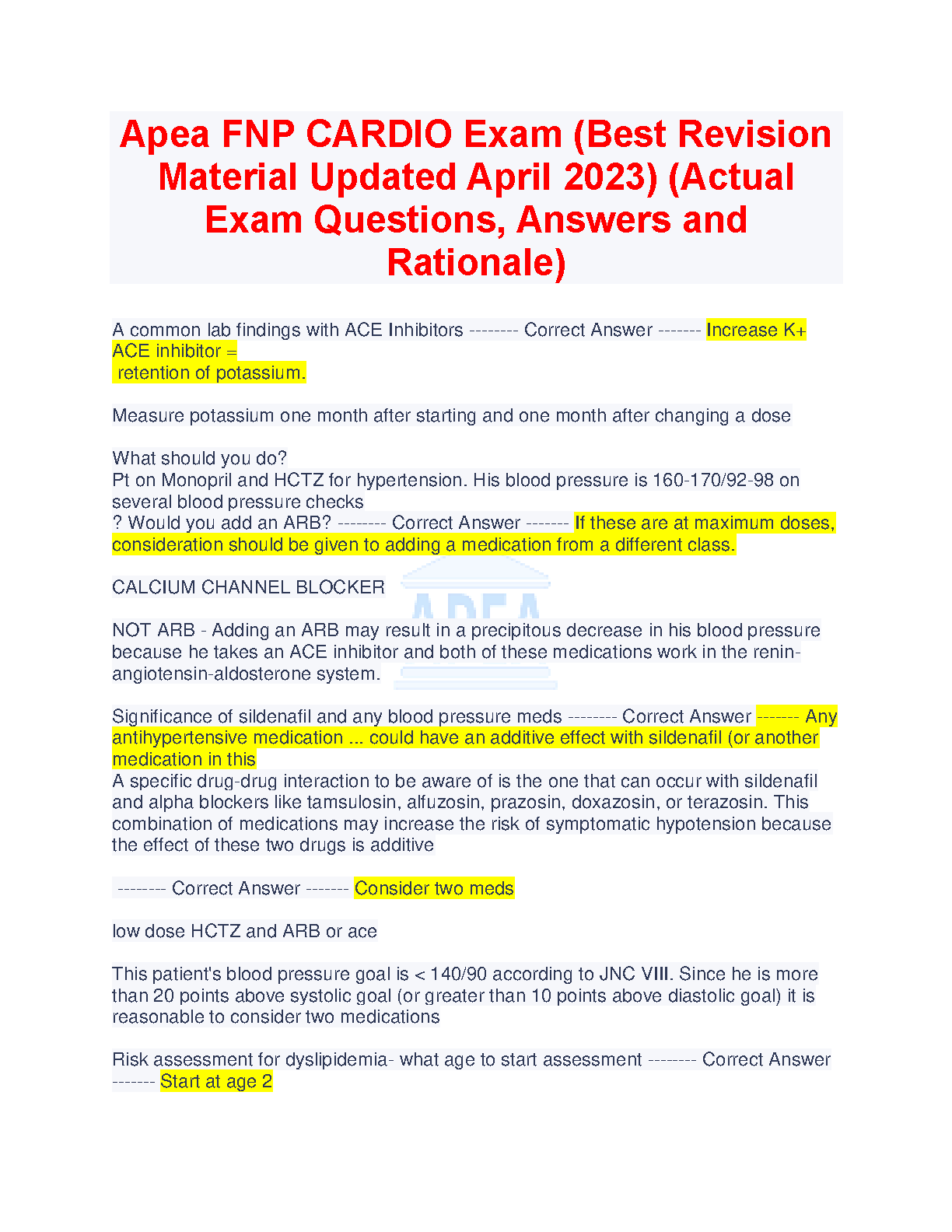 Apea FNP Cardiology Exam: April 2023 Edition - Actual Questions, Answers & Rationales for 2025/2026 Academic Success