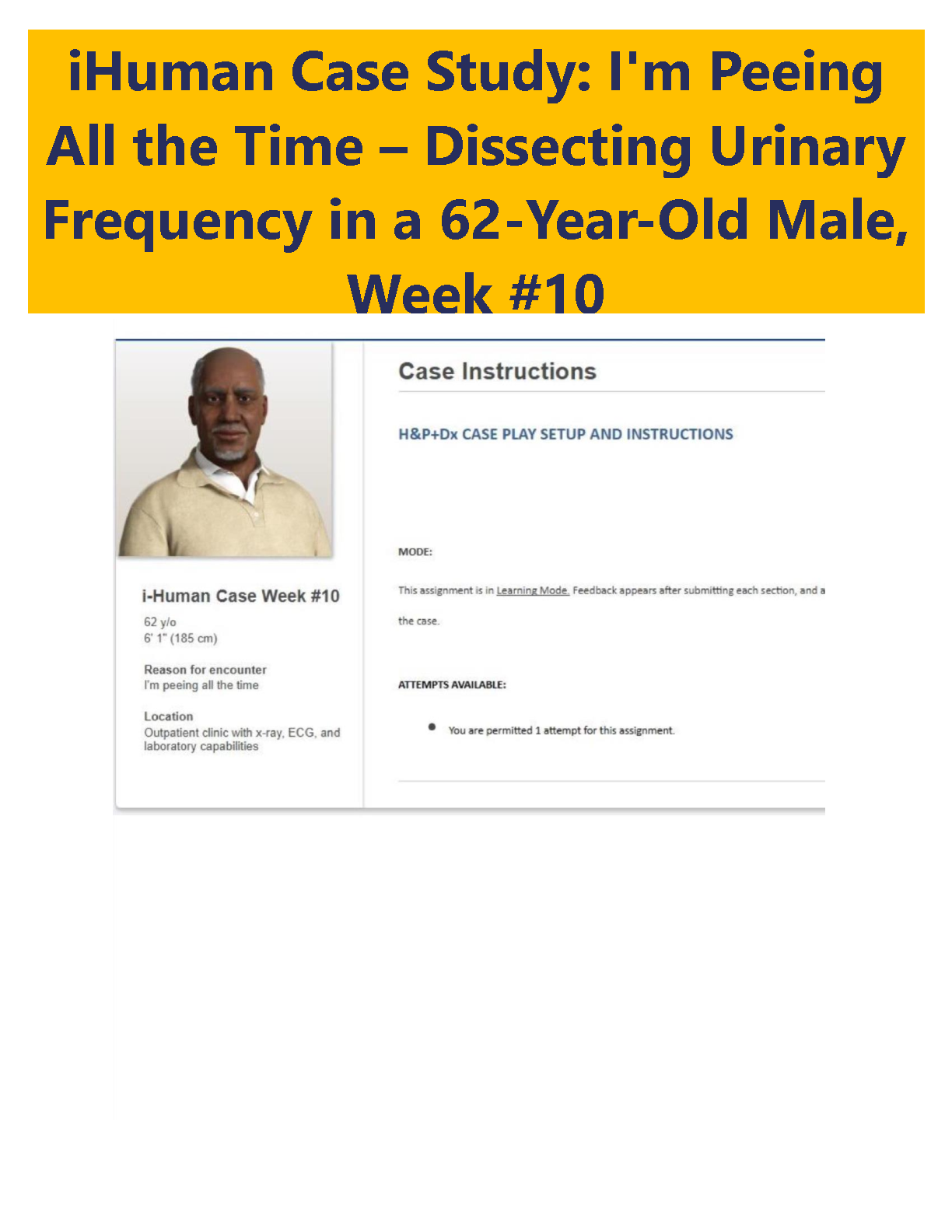 iHuman Case Study: Week 10 - Mastering Urinary Frequency in a 62-Year-Old Male for the 2025/2026 Academic Year