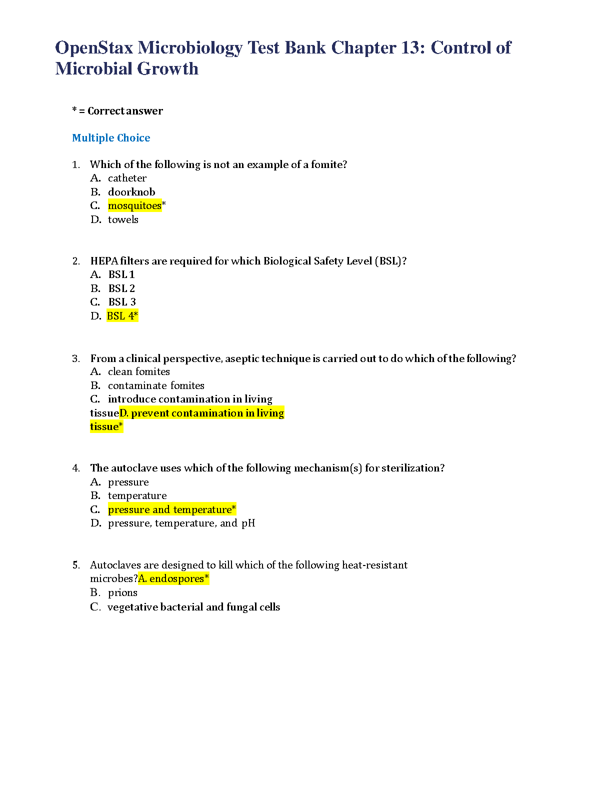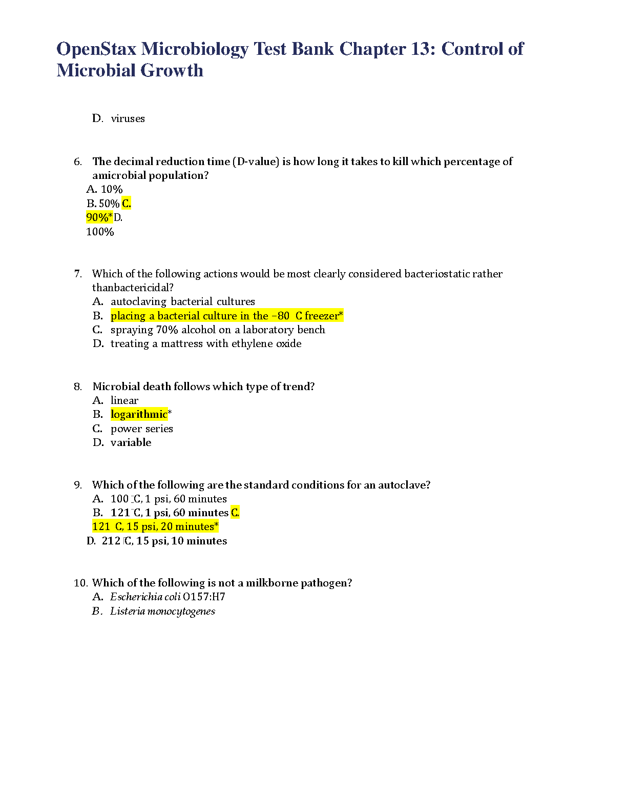 Test Bank for OpenStax Microbiology 1st Edition by Nina Parker, Mark Schneegurt, Anh-Hue Thi Tu, Philip Lister, Brian M. Forster - Chapter 13: Control of Microbial Growth (2025/2026 Exam Prep)