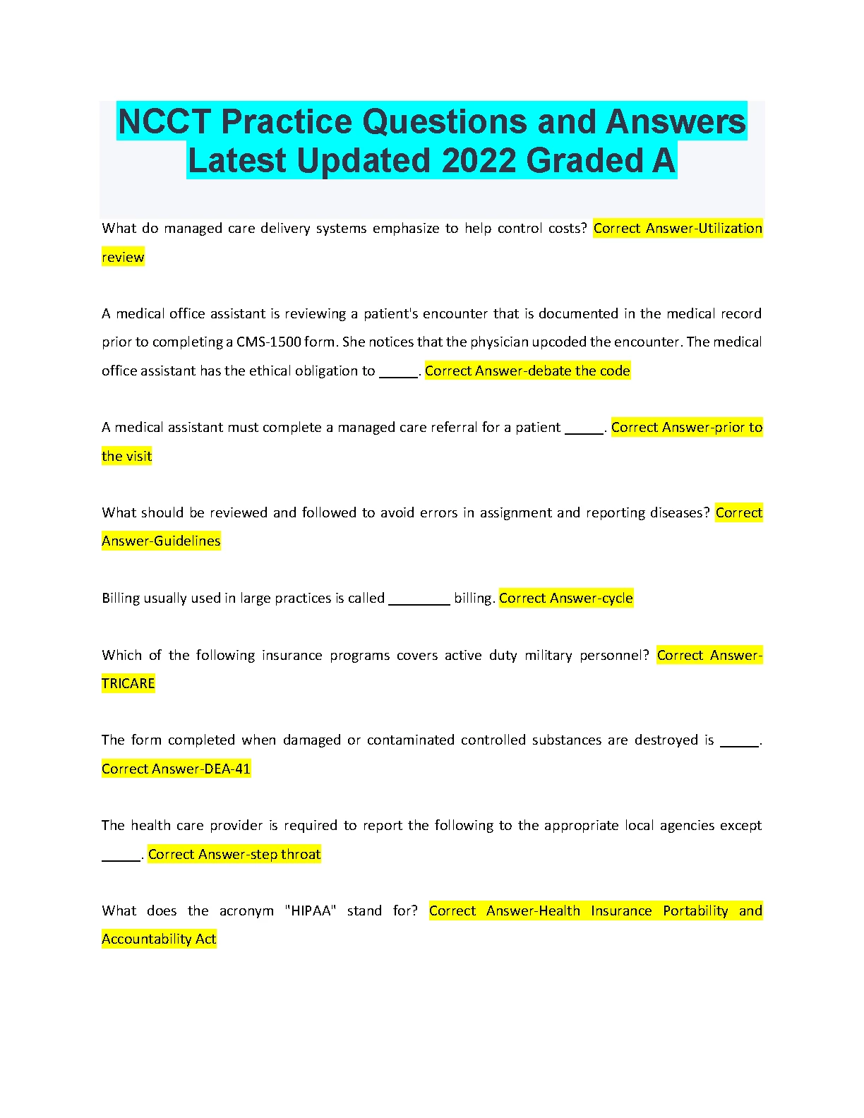 NCCT Practice Questions and Answers Latest Updated 2022/2023 Graded A+. DOWNLOAD on www.hackedexams.com INSTANTLY.