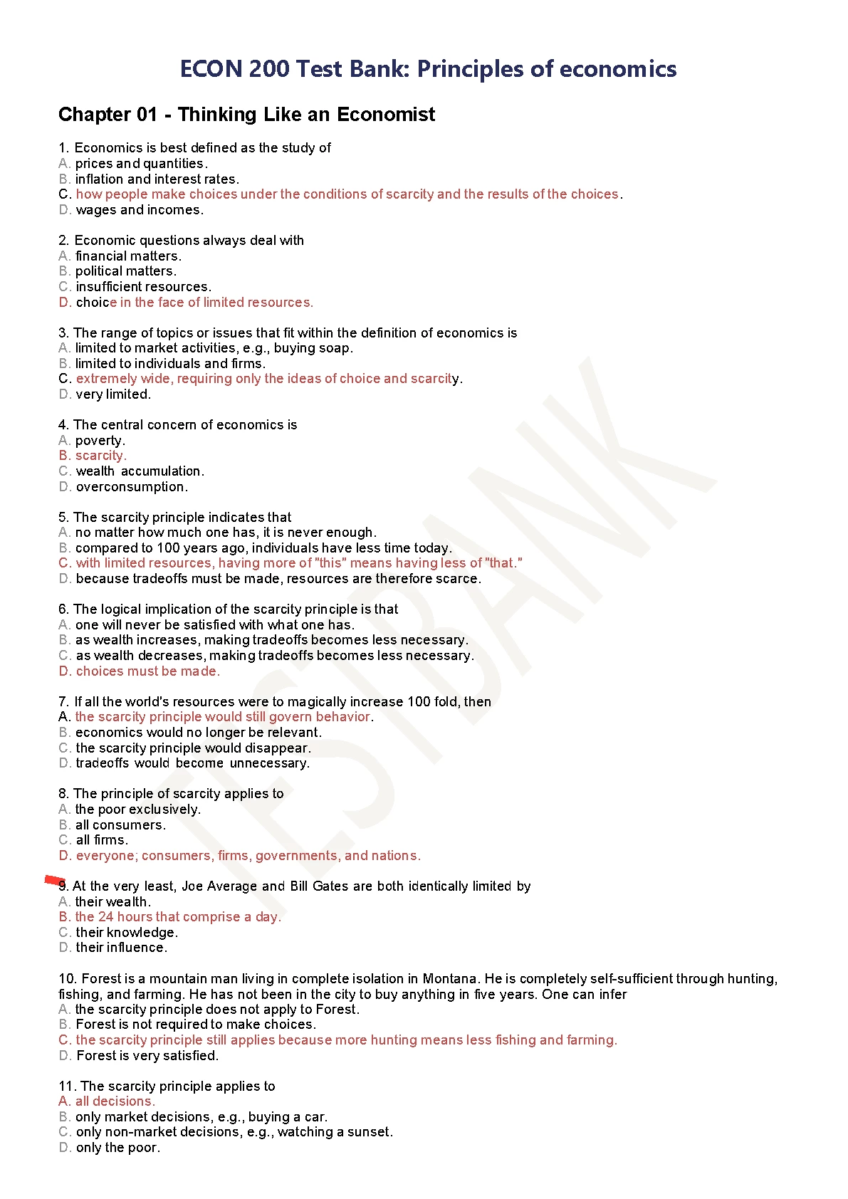 ECON 200 Test Bank: Principles of Economics BY ELIE E. ZOUKI