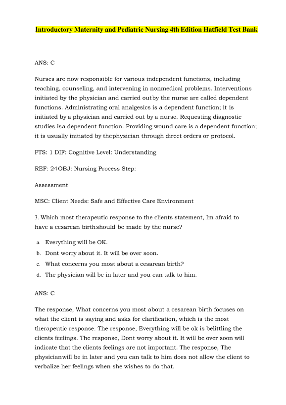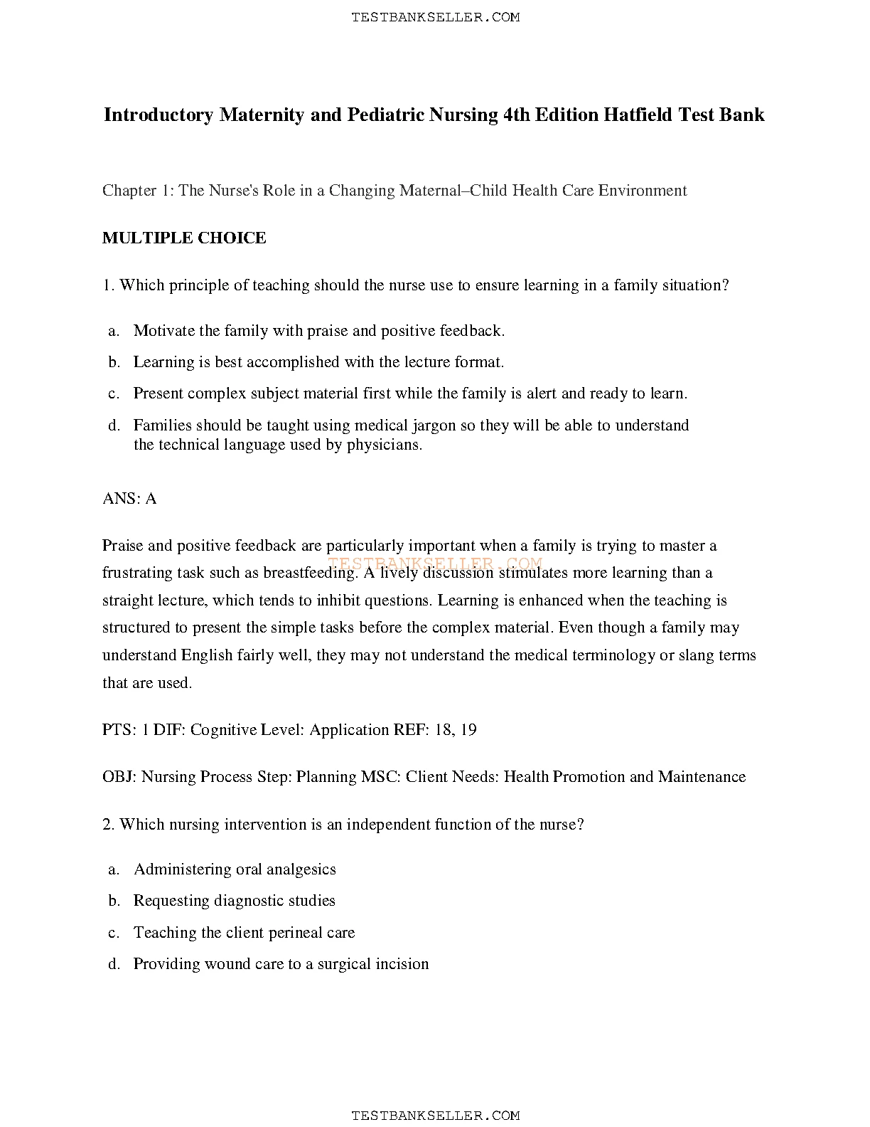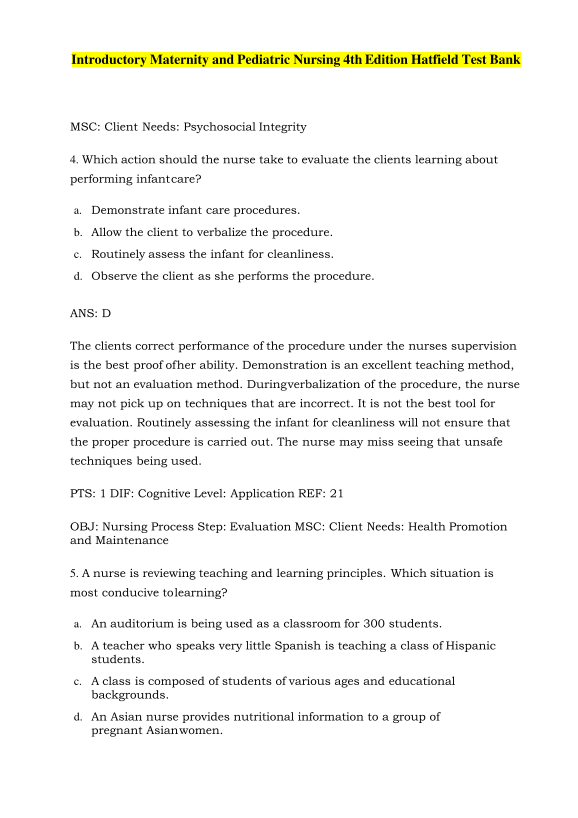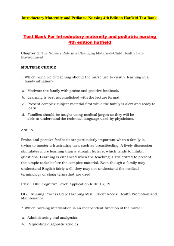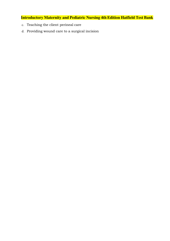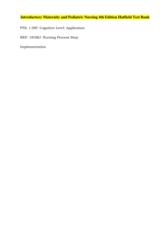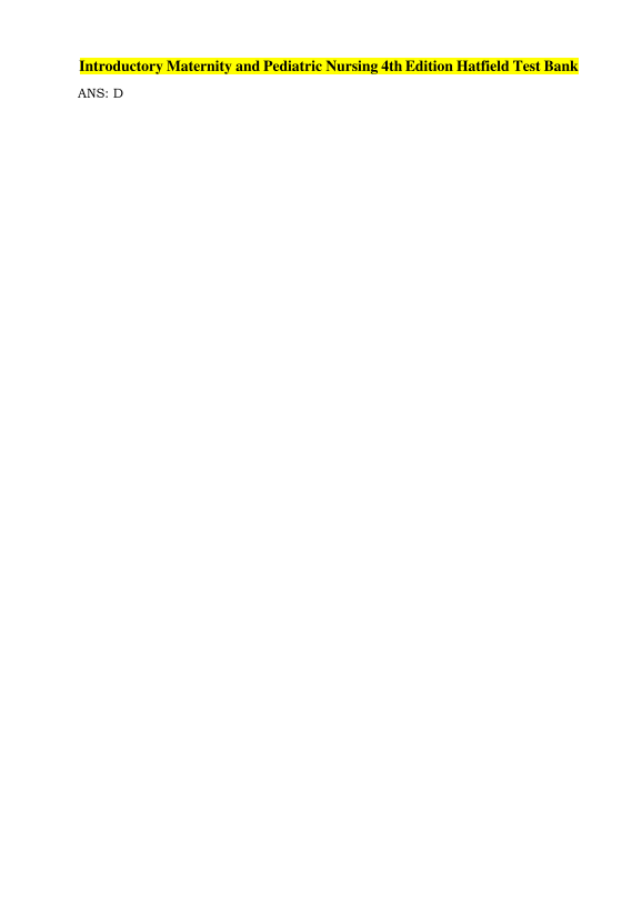 Introductory Maternity and Pediatric Nursing 4th Edition Hatfield Test Bank.
