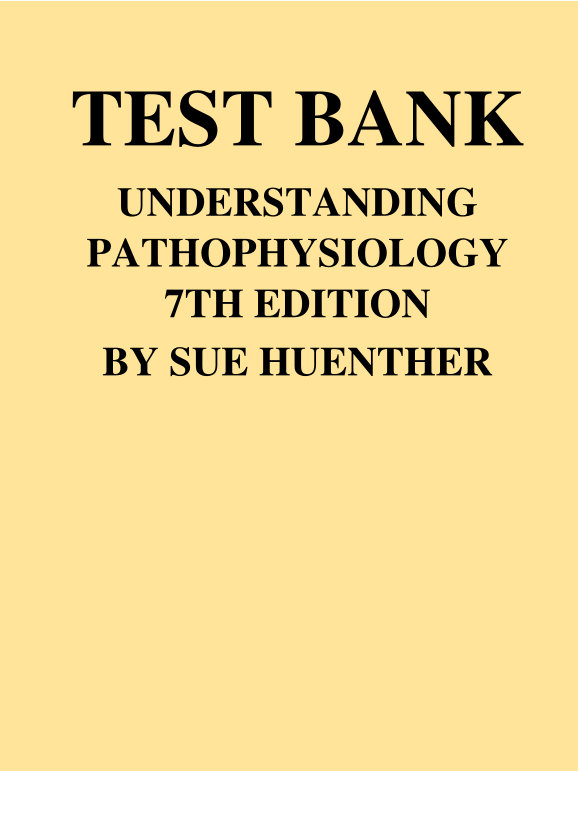 TEST BANK FOR UNDERSTANDING PATHOPHYSIOLOGY 7TH EDITION BY SUE HUENTHER. ALL CHAPTERS COVERED. DOWNLOAD ON www.hackedexams.com INSTANTLY.