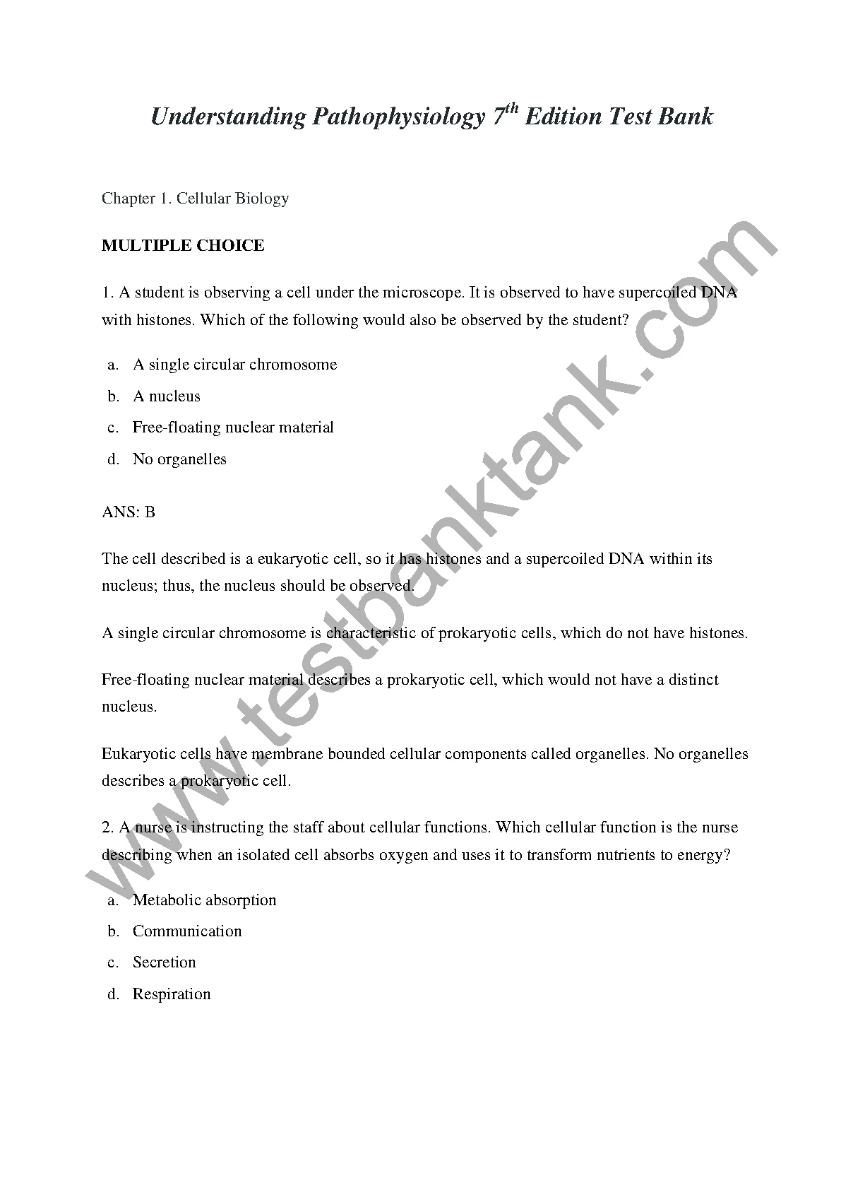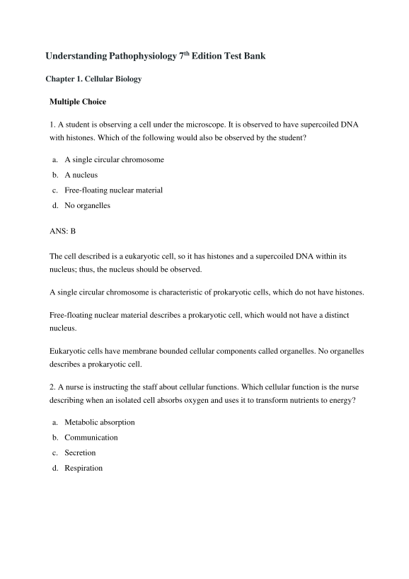 TEST BANK FOR UNDERSTANDING PATHOPHYSIOLOGY 7TH EDITION BY SUE HUENTHER