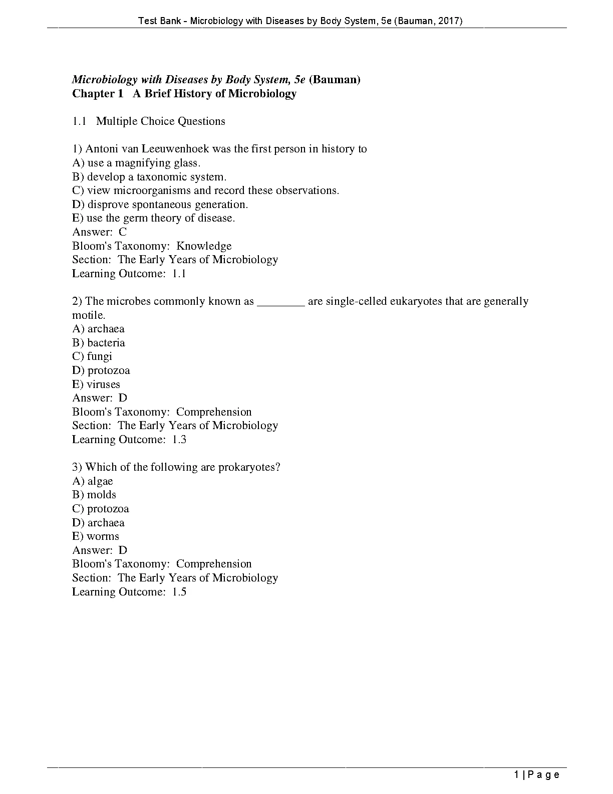 TEST BANK Microbiology with Diseases by Body System Robert Bauman 5th Edition