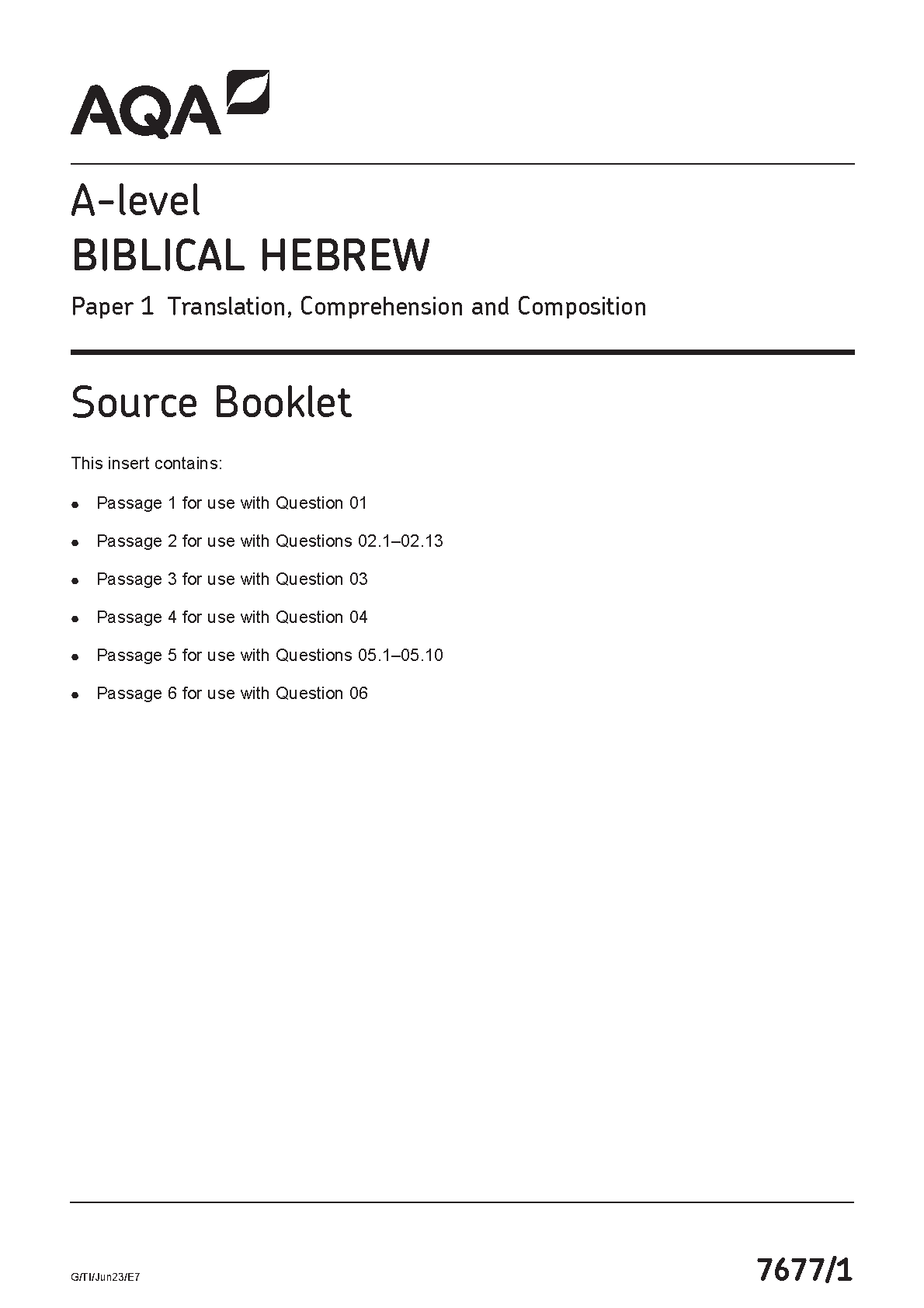 AQA AS BIBLICAL HEBREW PAPER 1 MAY 2023 Source Booklet (7677/1: Translation, Comprehension and Composition)
