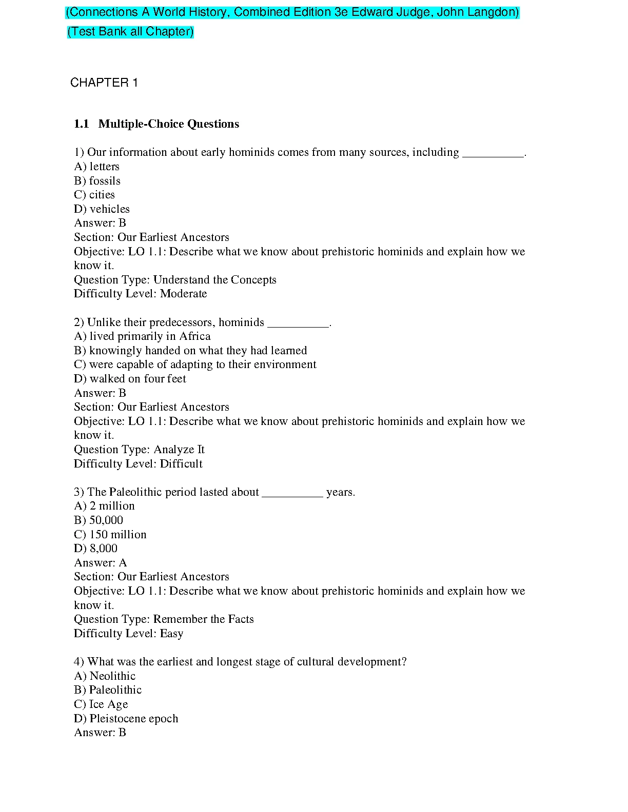 Connections A World History, Combined Edition 3e Edward Judge, John Langdon (Test Bank ALL CHAPTERS COVERED). DOWNLOAD on www.hackedexams.com INSTANTLY.