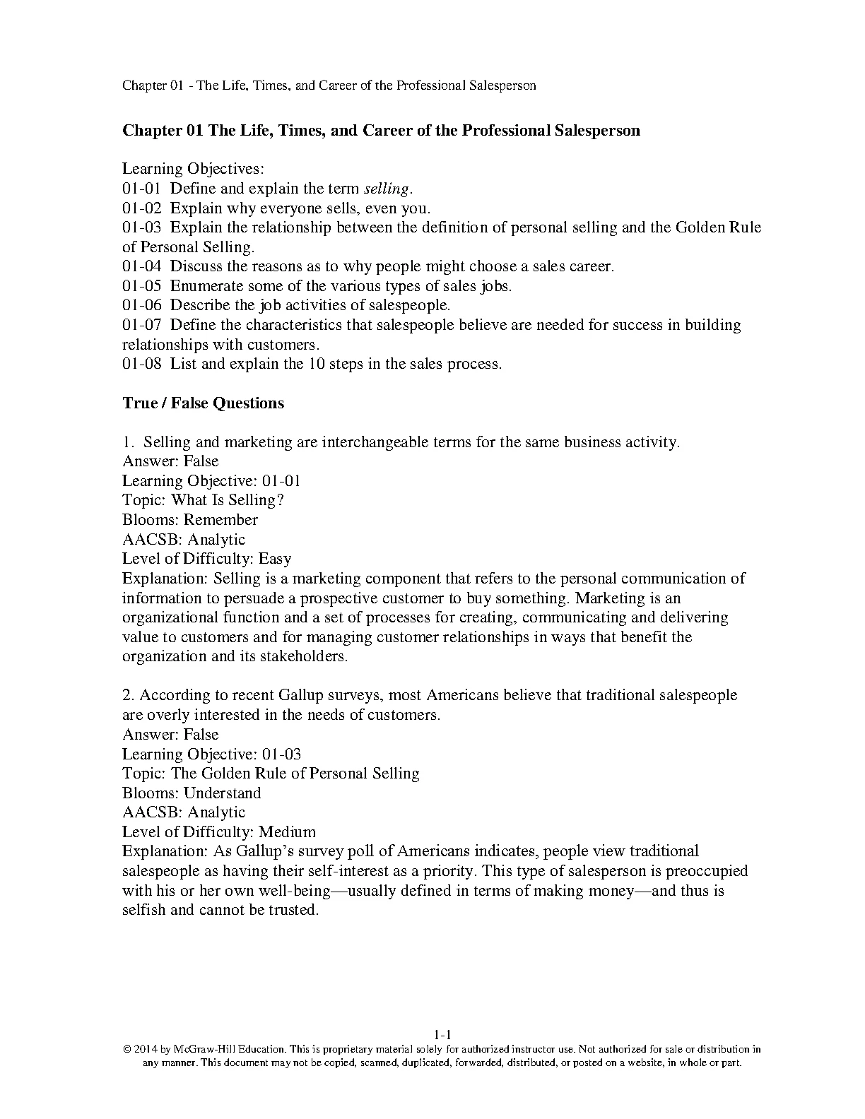 Fundamentals of Selling 13TH EDITION BY Charles COMPLETE TEST BANK