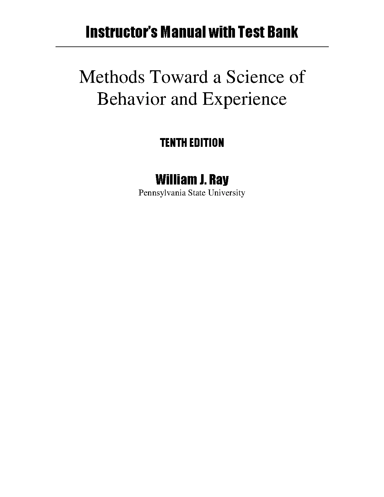 Instructor’s Manual with Test Bank Methods Toward a Science of Behavior and Experience TENTH EDITION William J. Ray . DOWNLOAD on www.hackedexams.com INSTANTLY.