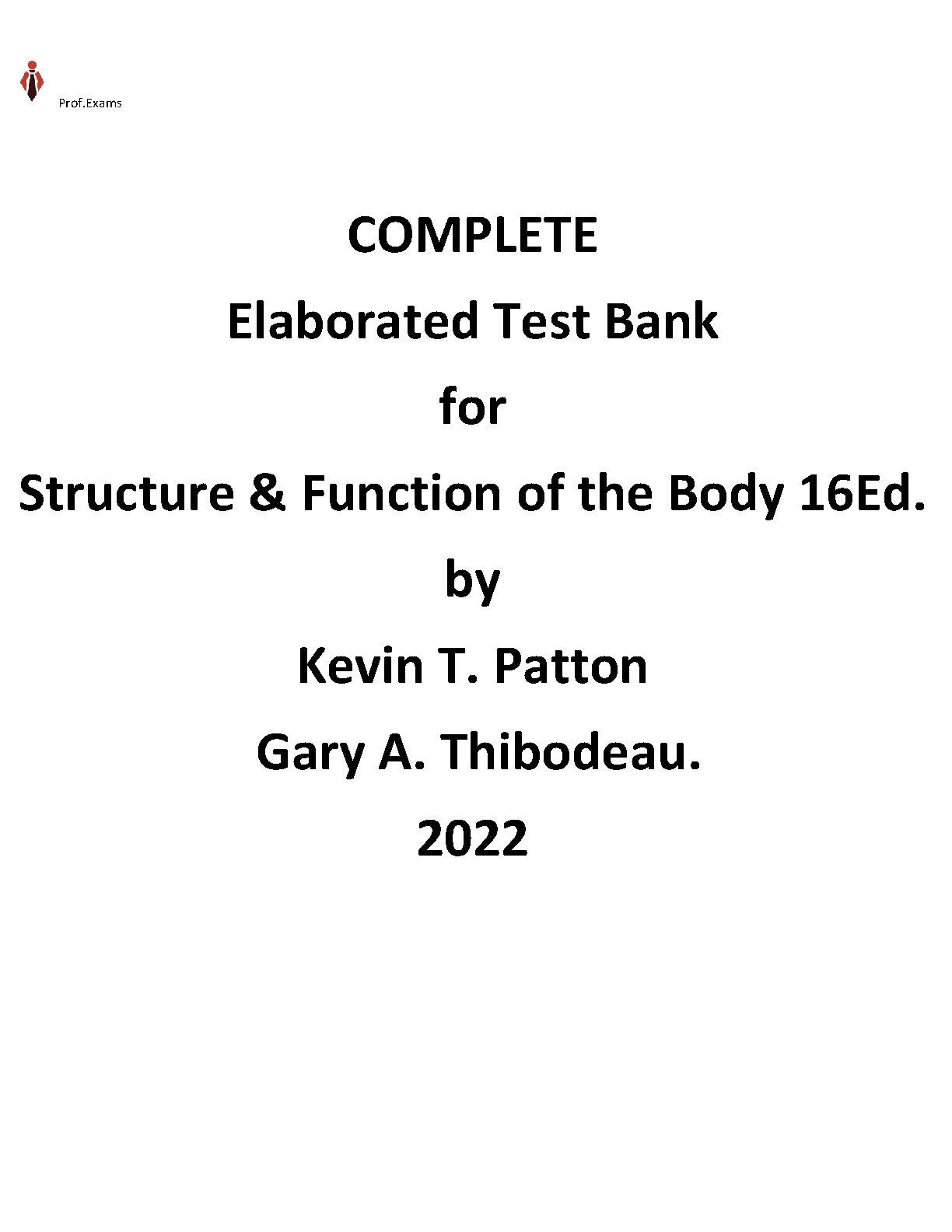 COMPLETE Elaborated Test Bank for Structure & Function of the Body 16Edition. by Kevin T. Patton Gary A. Thibodeau.