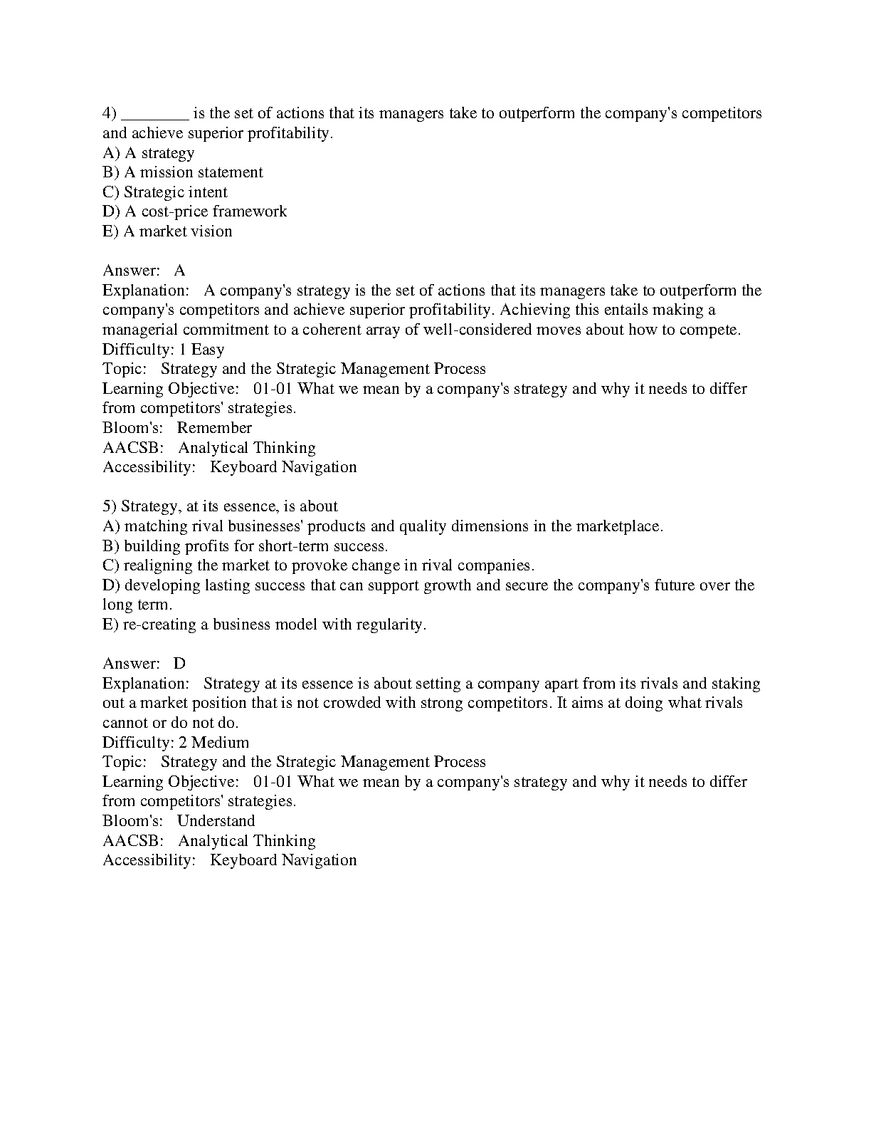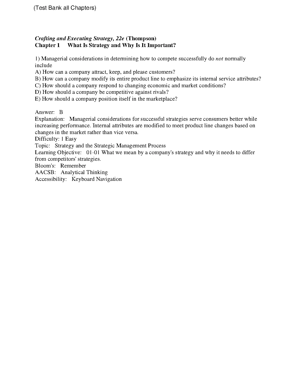 Test Bank for Crafting and Executing Strategy, 22nd Edition (By Thompson). DOWNLOAD on www.hackedexams.com INSTANTLY.