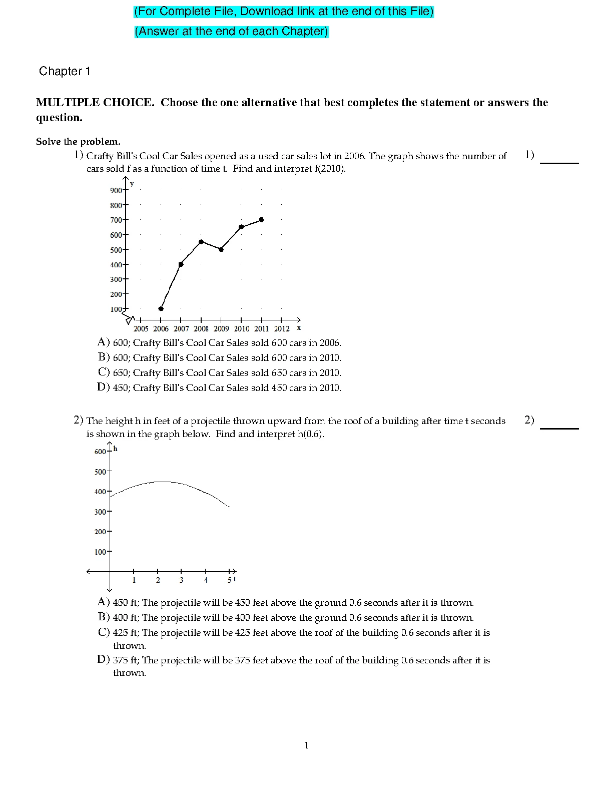 TEST BANK FOR College Algebra in Context with Applications for the Managerial Life and Social Sciences 5TH EDITION BY Ronald Harshbarger Lisa Yocco