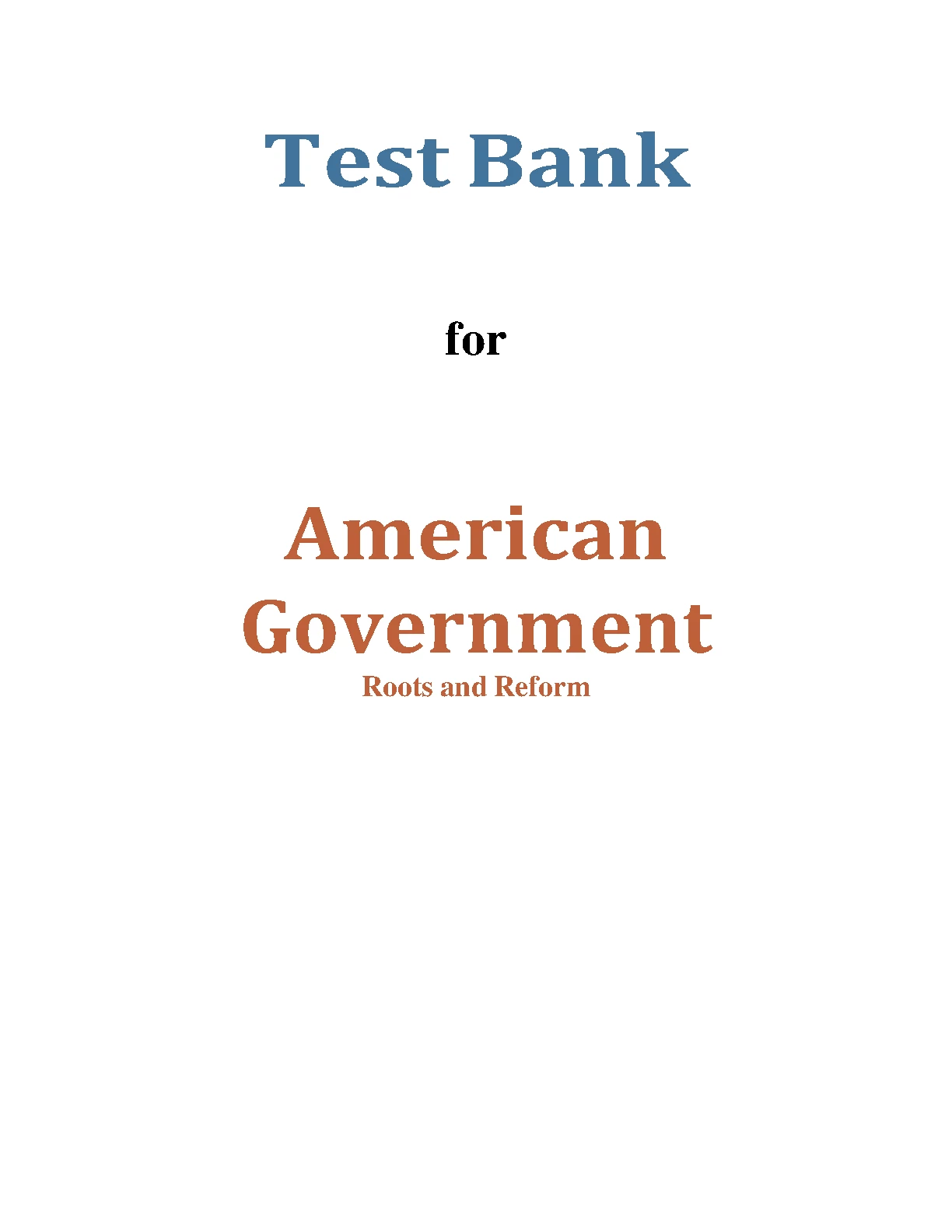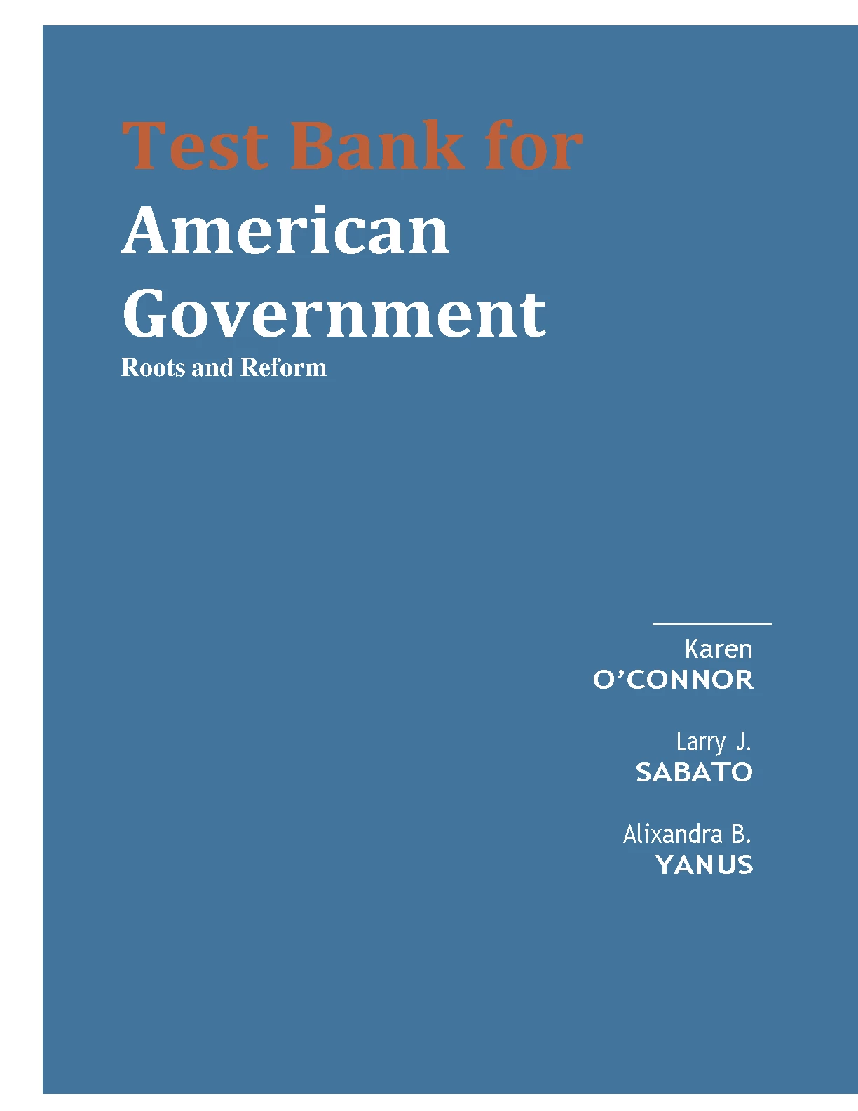 Test Bank for American Government Roots and Reform Karen O’CONNOR Larry J. SABATO Alixandra B. YANUS. DOWNLOAD on www.hackedexams.com INSTANTLY.