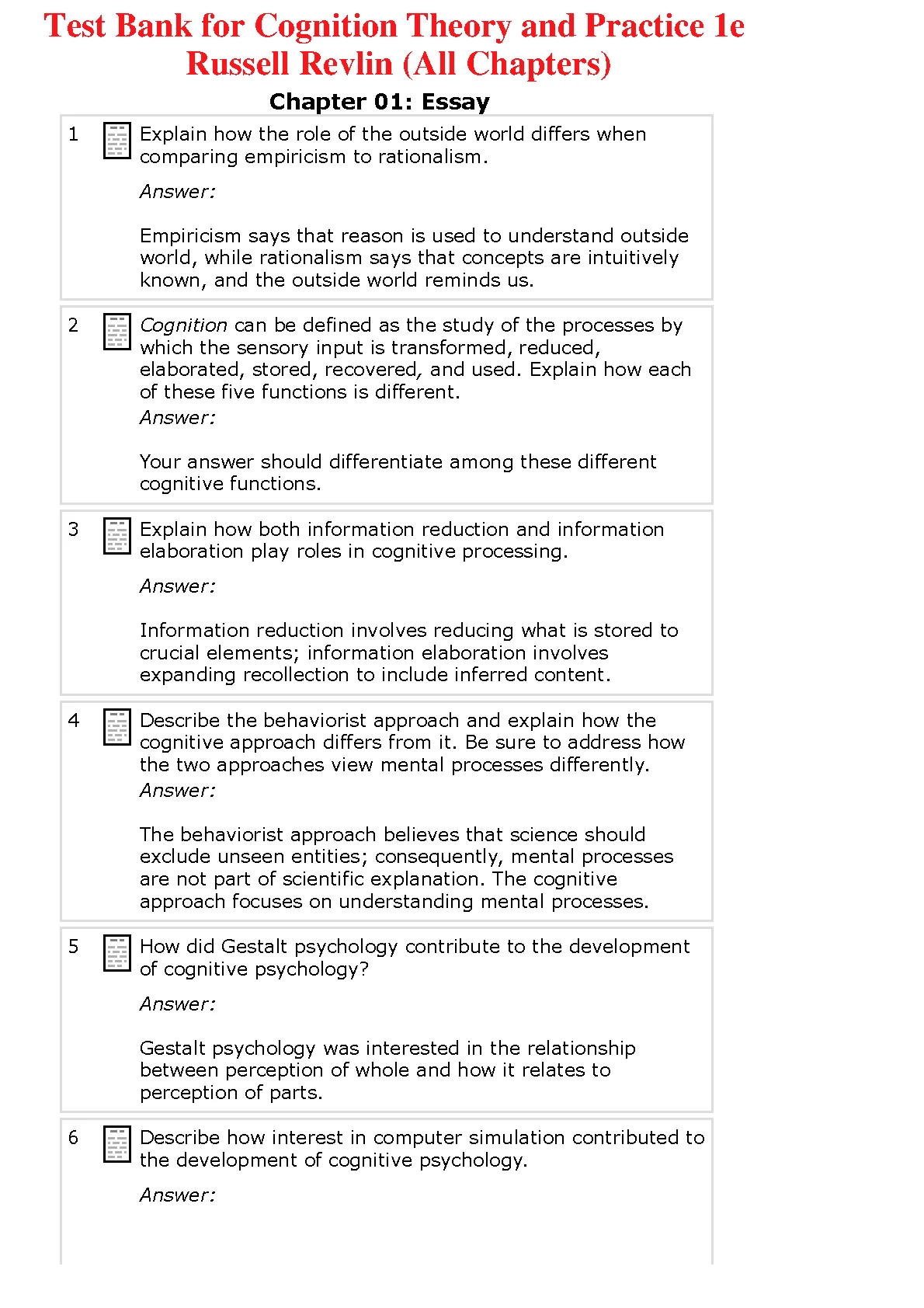 Test Bank for Cognition Theory and Practice 1ST EDITION BY Russell Revlin (All Chapters COVERED)