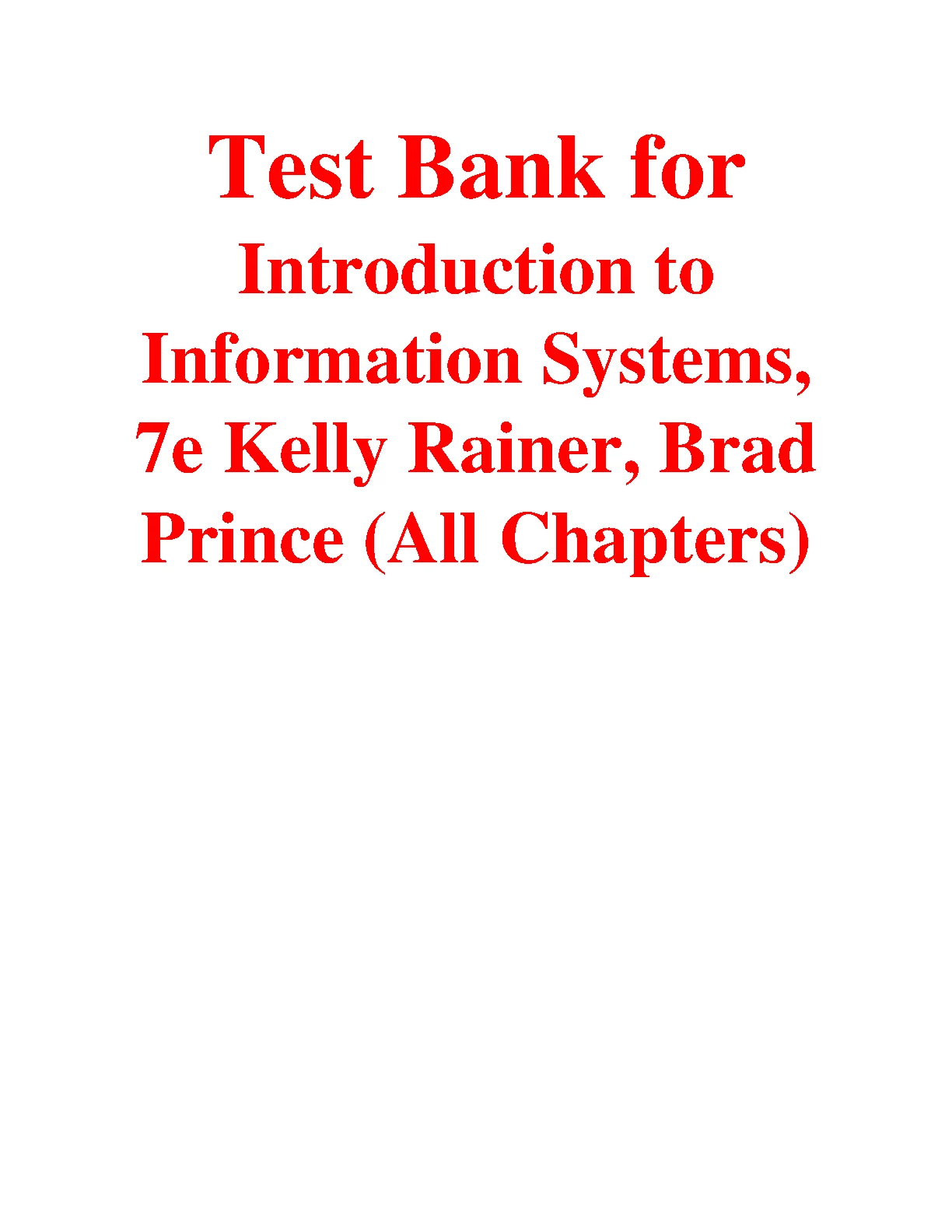 Test Bank for Introduction to Information Systems, 7TH EDITION BY Kelly Rainer, Brad Prince (All Chapters)