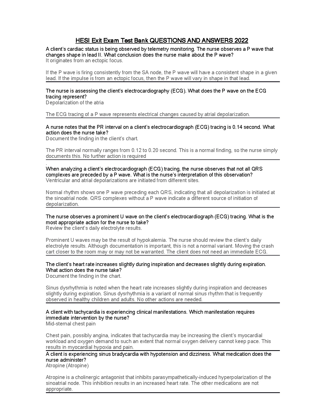 HESI Exit Exam Test Bank QUESTIONS AND ANSWERS 2022 /2023