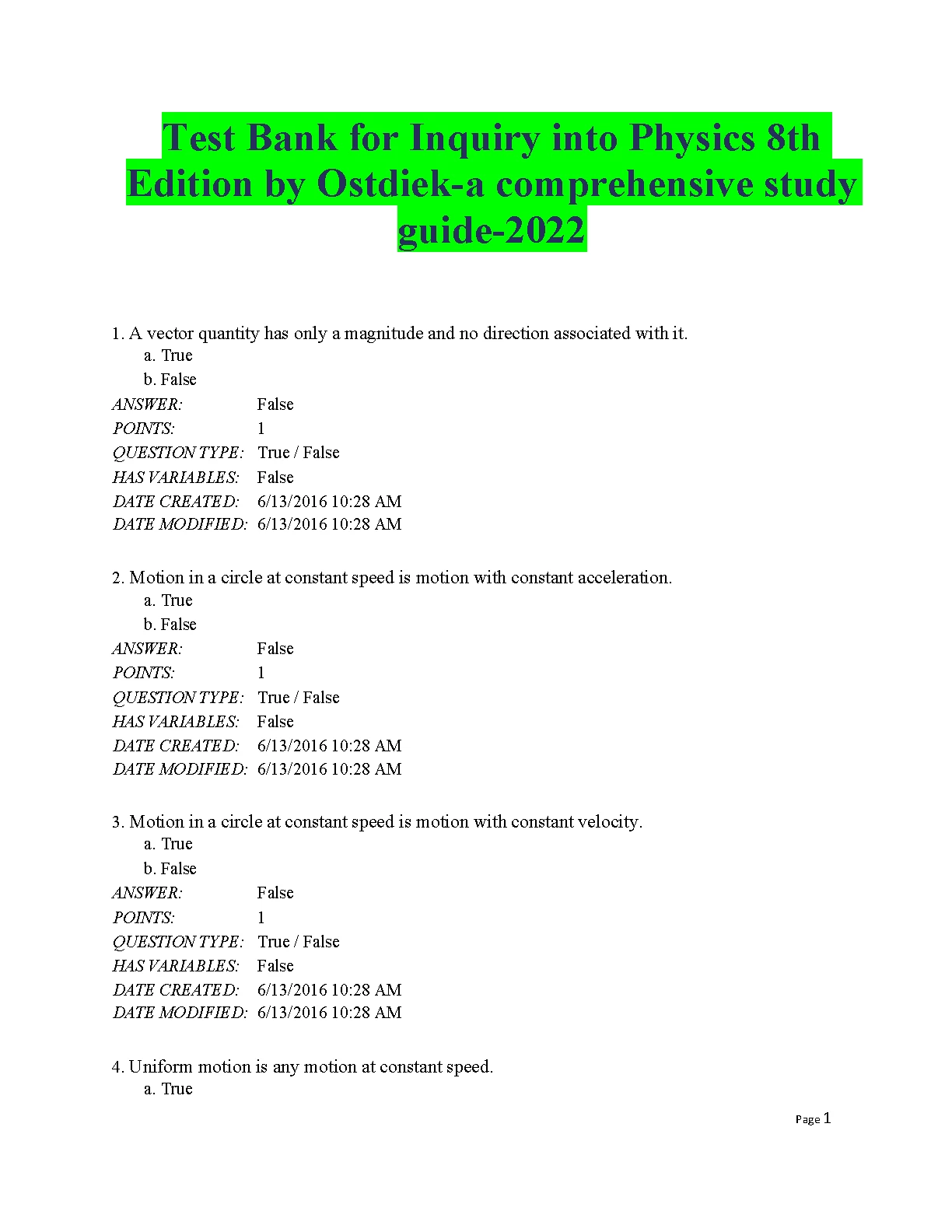 Test Bank for Inquiry into Physics 8th Edition by Ostdiek-A Comprehensive Study Guide. DOWNLOAD on www.hackedexams.com INSTANTLY.