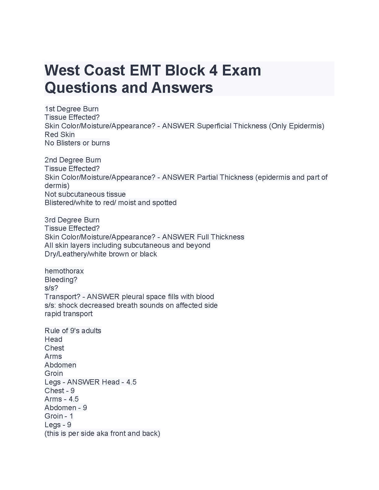 West Coast EMT Block 4 Exam Questions and Answers RATED A= FOR 2023/2024
