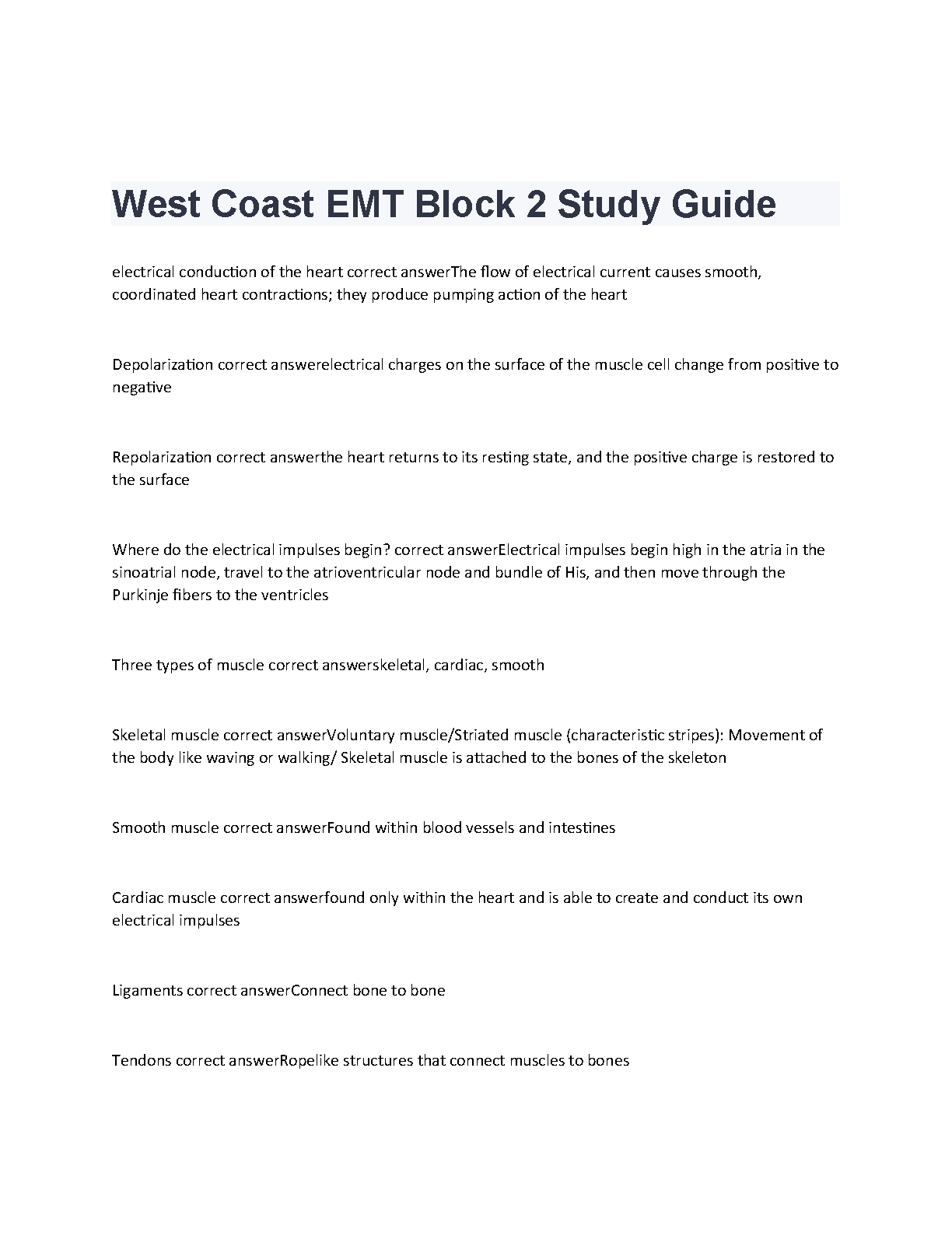West Coast EMT Block 2 Study Guide NEW GUIDE 2023
