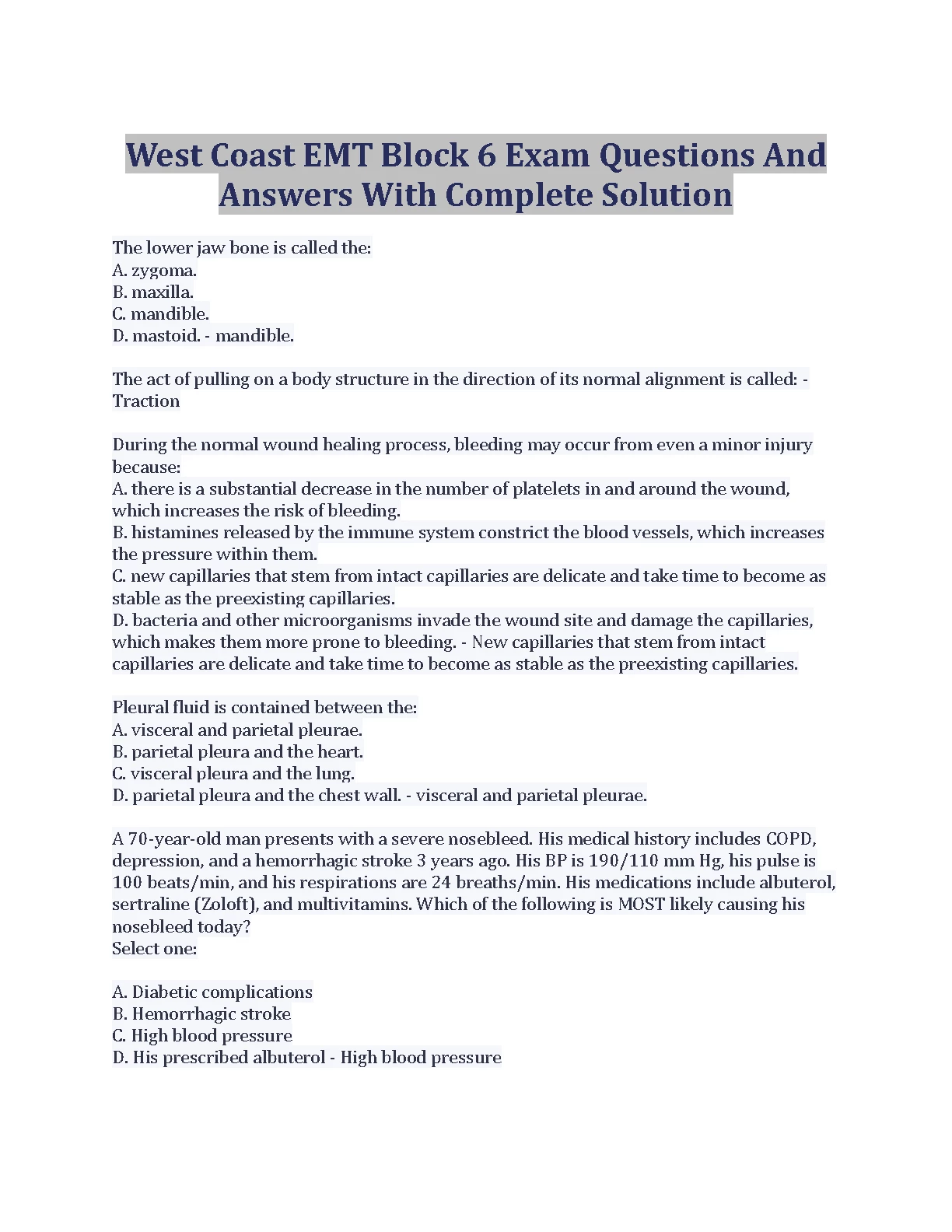 West Coast EMT Block 6 Exam Questions And Answers With Complete Solution BEST RATED FOR 2023. DOWNLOAD on www.hackedexams.com INSTANTLY.