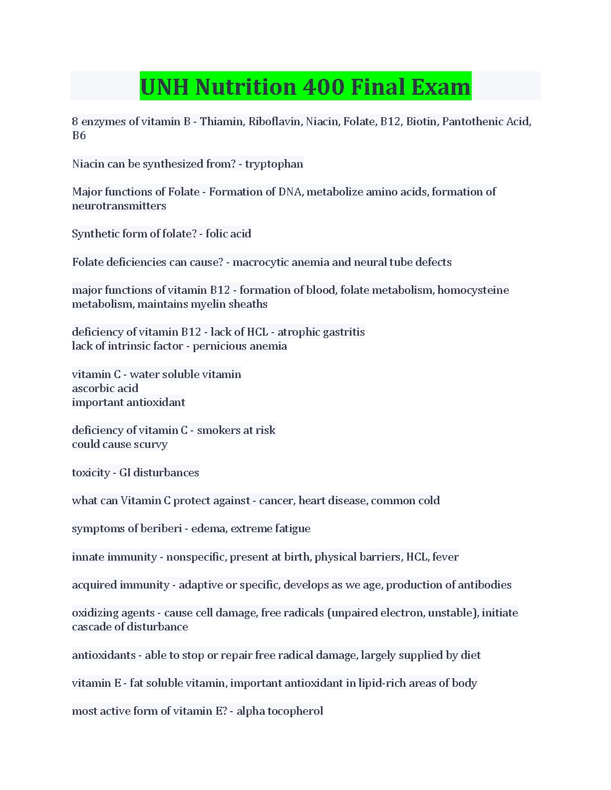 UNH Nutrition 400 Final Exam WITH COMPLETE AND CORRECT ANSWERS. DOWNLOAD on www.hackedexams.com INSTANTLY.