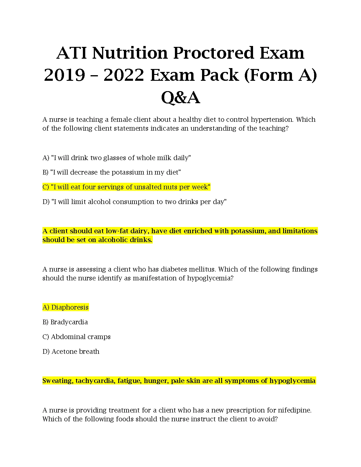 ATI Nutrition Proctored Exam Exam Pack (Form A) Q&A NEW SOLUTION 2023. DOWNLOAD on www.hackedexams.com INSTANTLY.