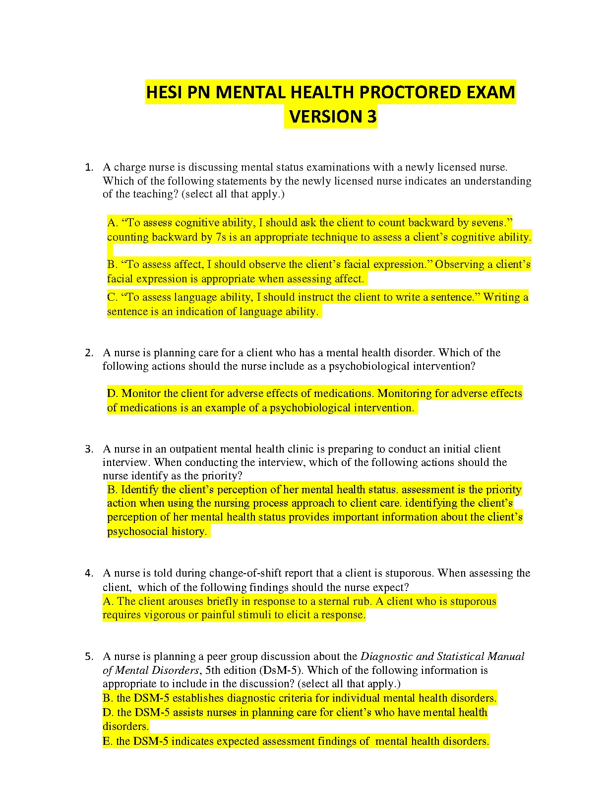 HESI PN MENTAL HEALTH PROCTORED EXAM VERSION 3 MOST RECENT SOLUTION SCORED 100%. DOWNLOAD on www.hackedexams.com INSTANTLY.