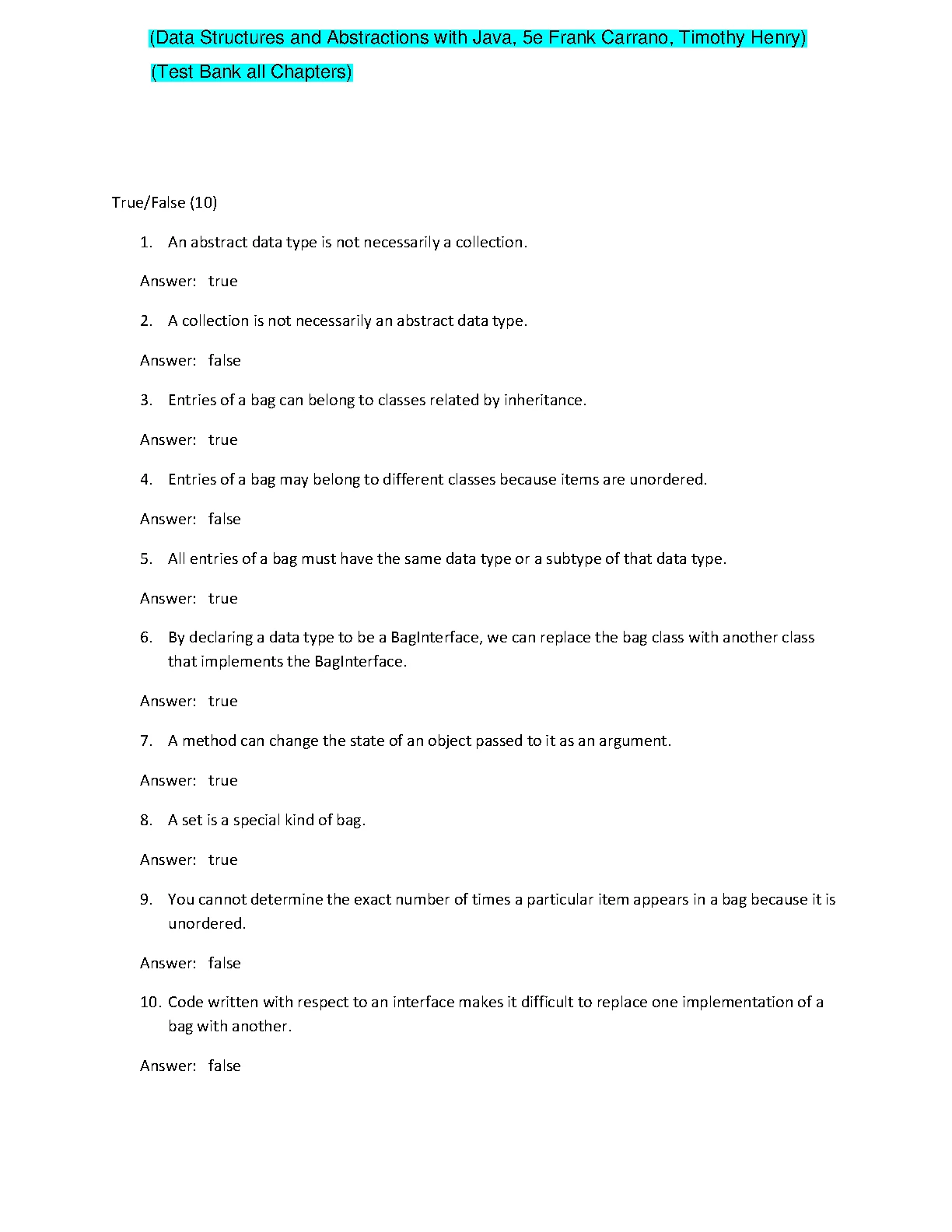 Data Structures and Abstractions with Java, 5TH EDITION BY Frank Carrano, Timothy Henry (Test Bank all Chapters). DOWNLOAD on www.hackedexams.com INSTANTLY.