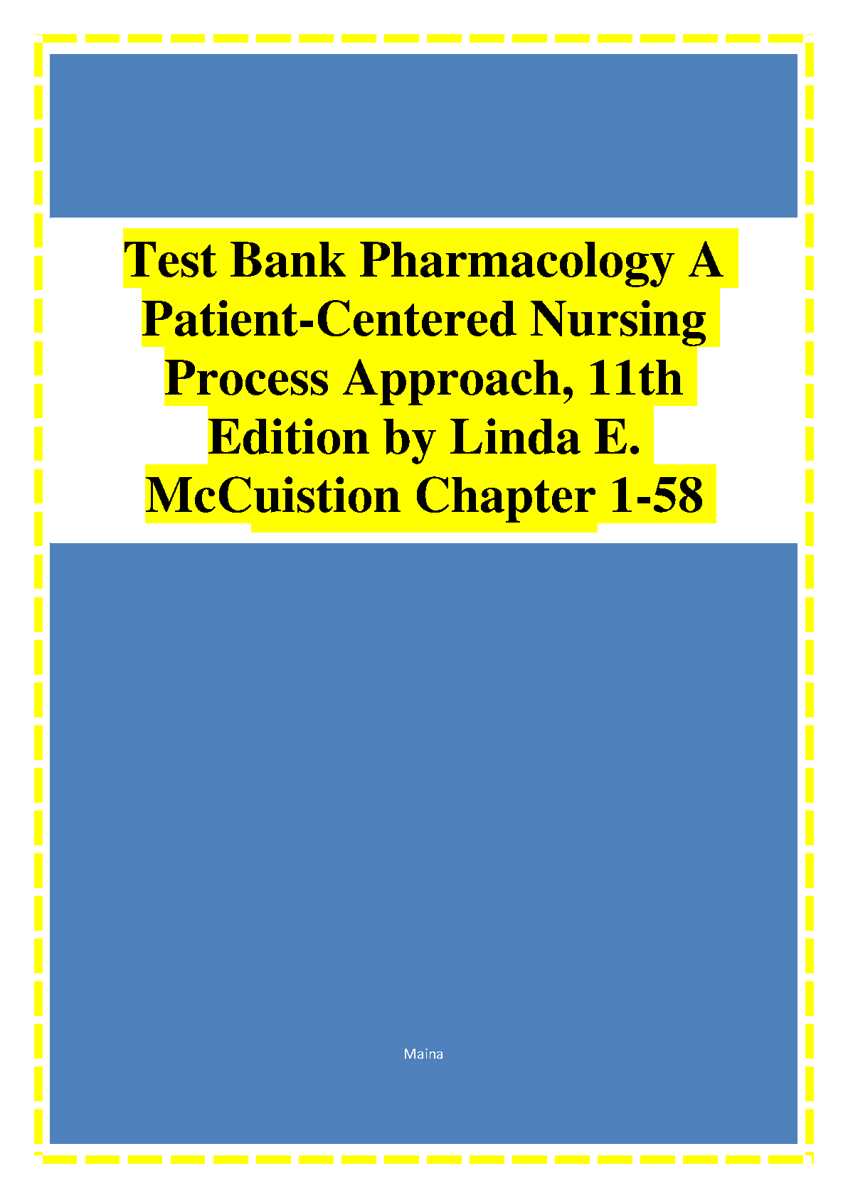 Test Bank Pharmacology A Patient Centered Nursing Process Approach, 11th Edition by Linda E. McCuistion Chapter 1-58 NEW UPDATE. DOWNLOAD on www.hackedexams.com INSTANTLY.