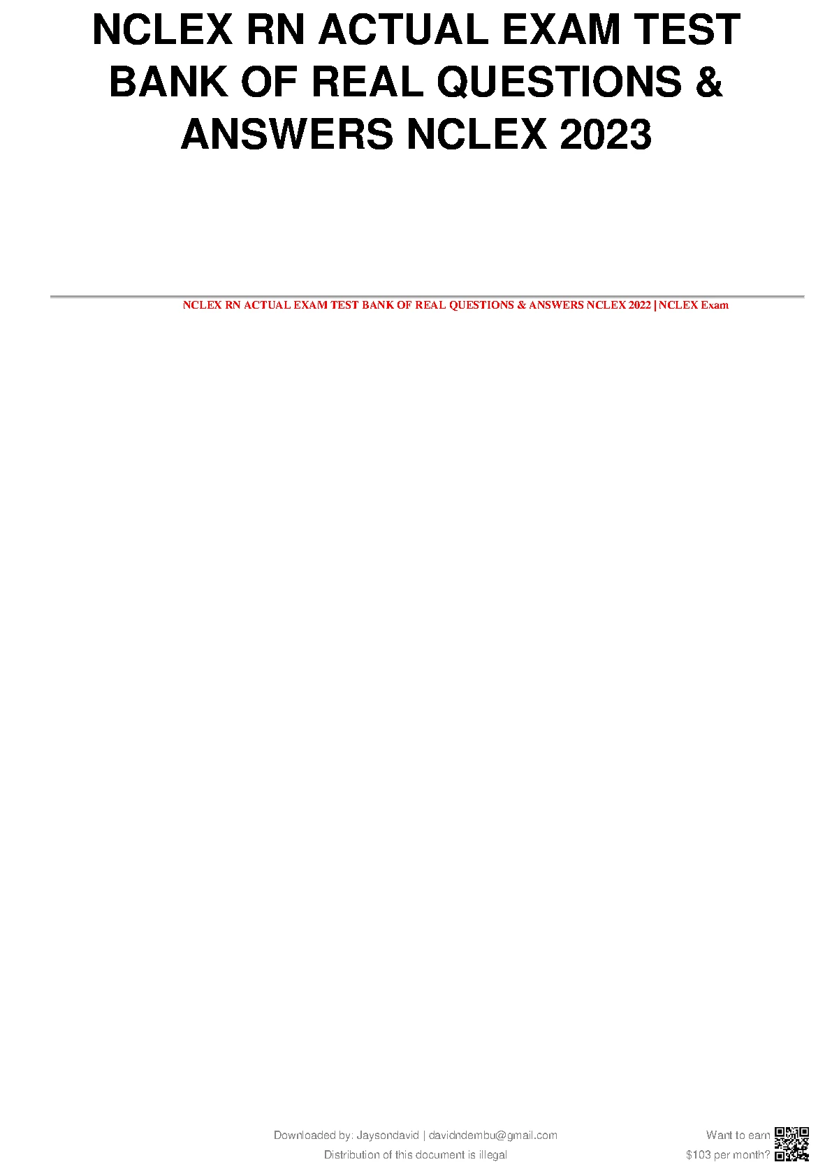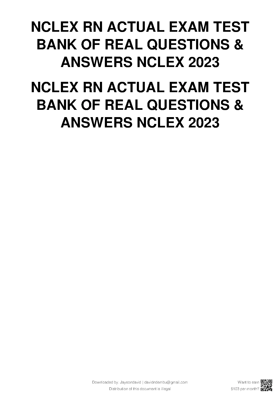 NCLEX RN ACTUAL EXAM TEST BANK OF REAL QUESTIONS & ANSWERS NCLEX 2023
