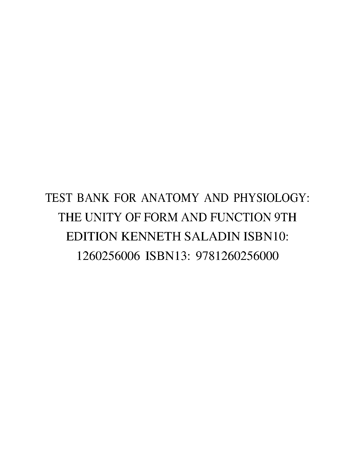 TEST BANK FOR ANATOMY AND PHYSIOLOGY: THE UNITY OF FORM AND FUNCTION 9TH EDITION KENNETH SALADIN