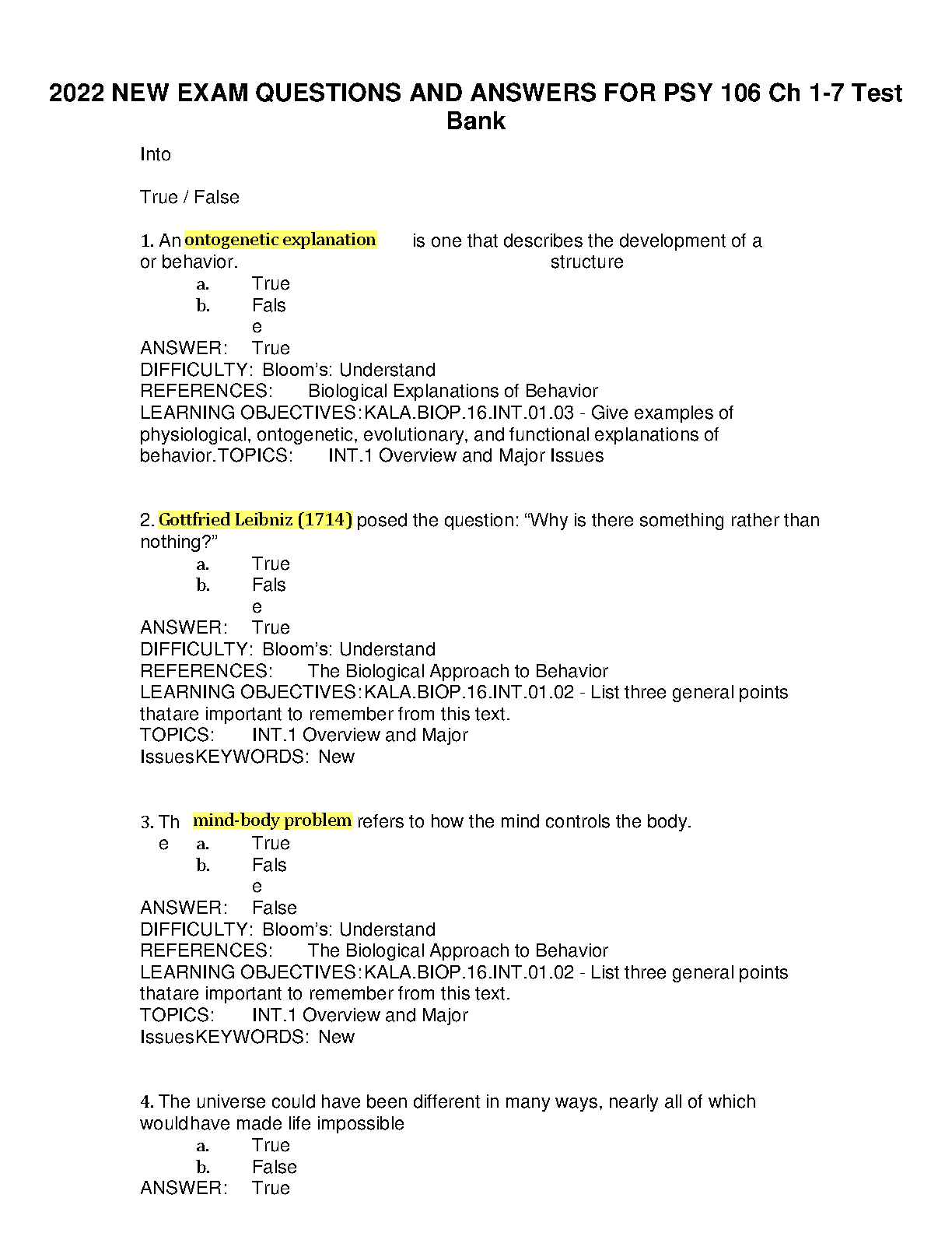 2022/2023 NEW EXAM QUESTIONS AND ANSWERS FOR PSY 106 Ch 1-7 Test Bank. DOWNLOAD on www.hackedexams.com INSTANTLY.