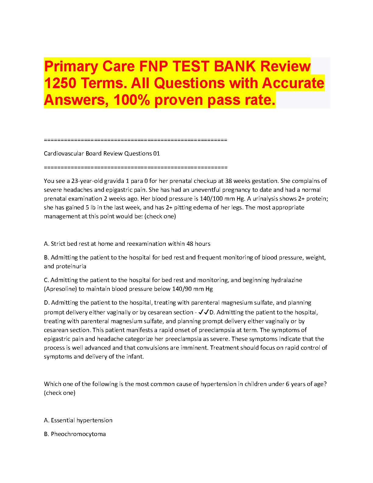 Primary Care FNP TEST BANK Review 1250 Terms. All Questions with Accurate Answers, 100% proven pass rate. DOWNLOAD on www.hackedexams.com INSTANTLY.