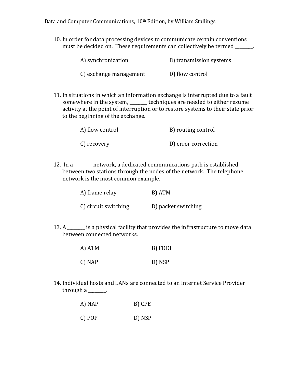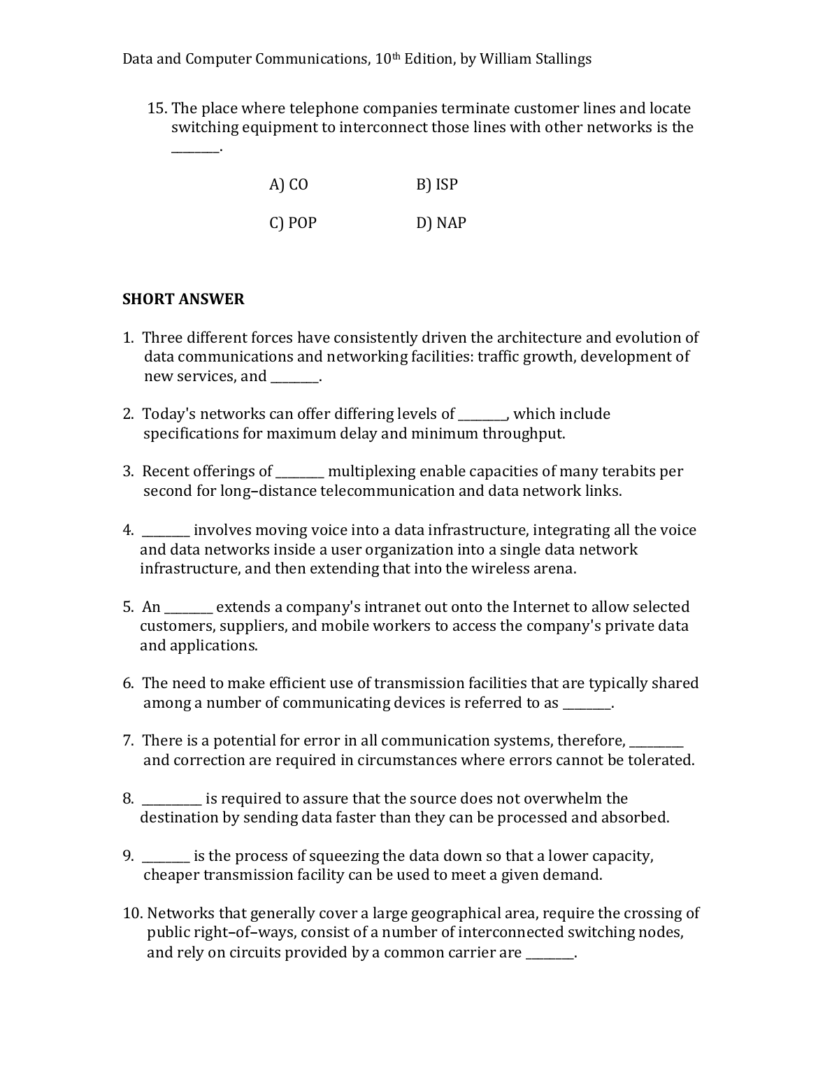 TEST BANK FOR Data and Computer Communications, 10th Edition, by William Stallings