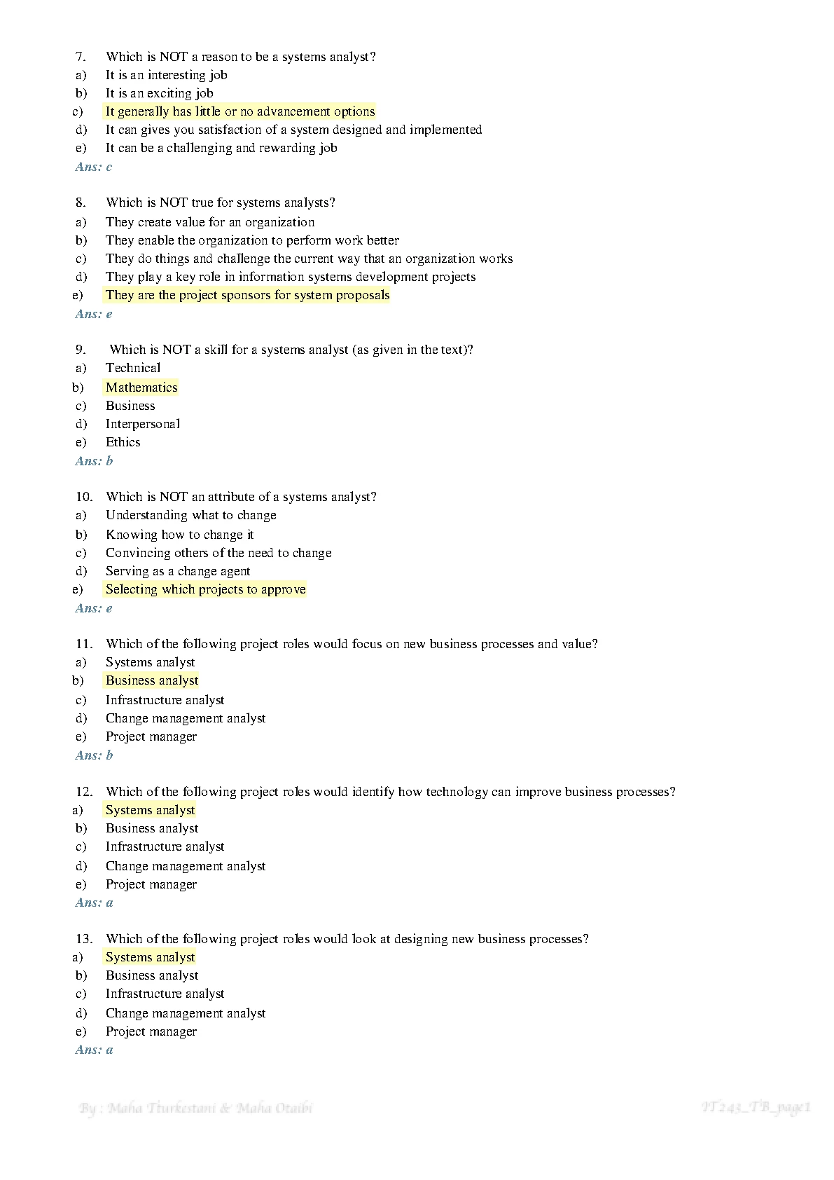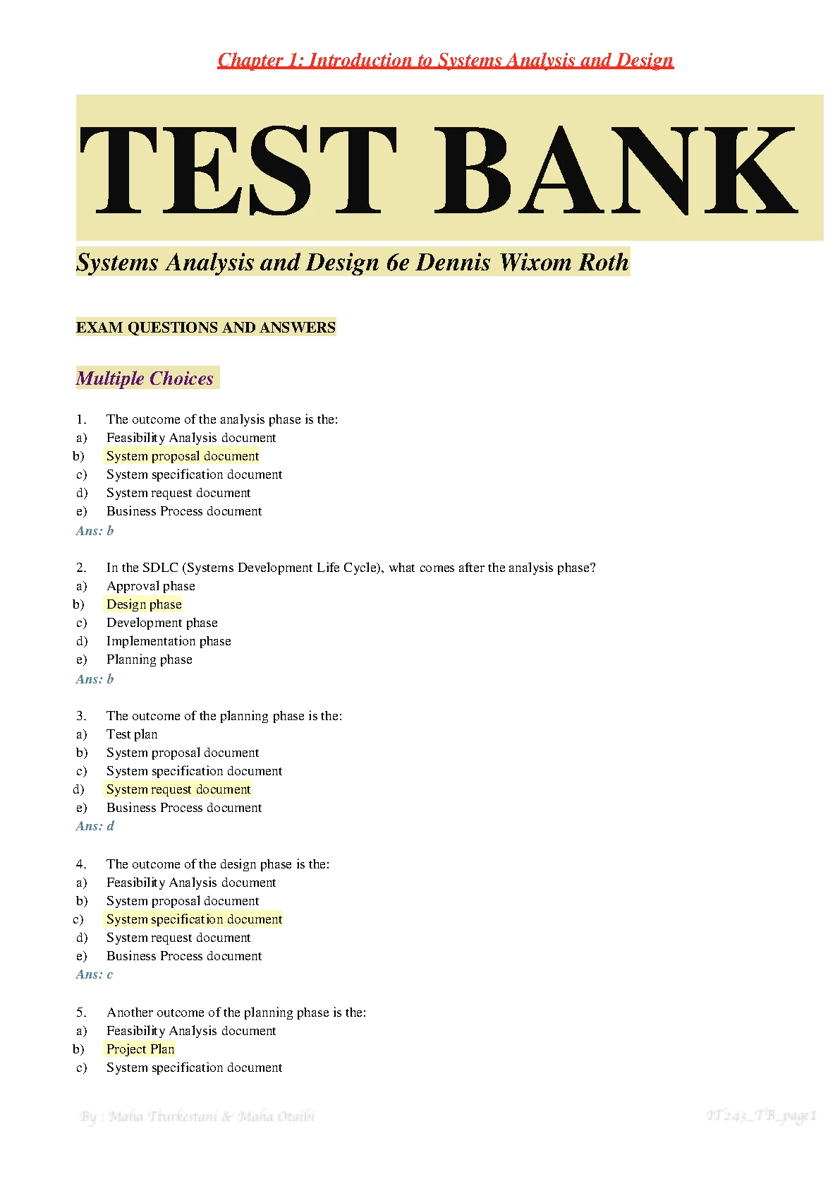 TEST BANK Systems Analysis and Design 6TH EDITION BY Dennis Wixom Roth