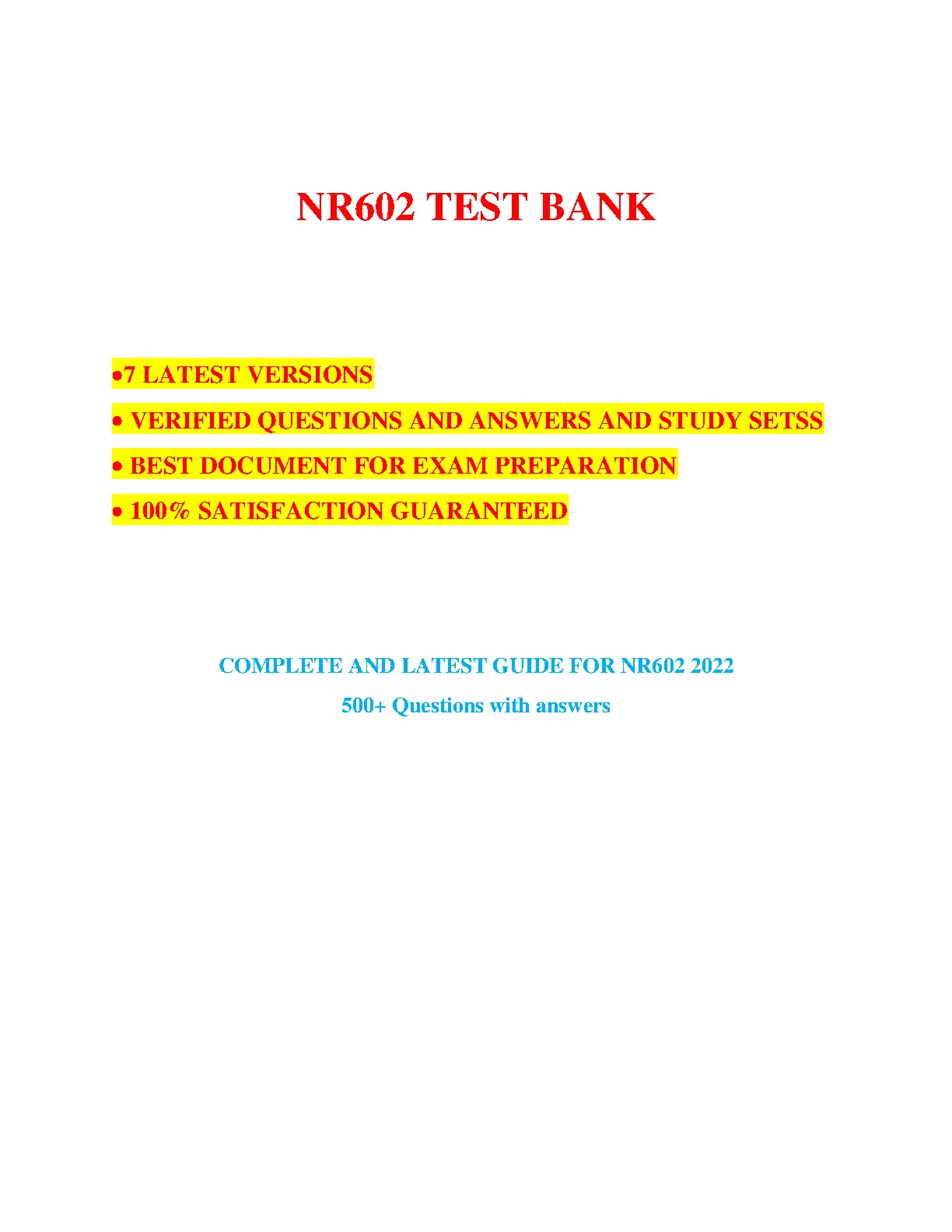 NR602 TEST BANK 7 LATEST VERSIONS  VERIFIED QUESTIONS AND ANSWERS AND STUDY SETS  BEST DOCUMENT FOR EXAM PREPARATION  100% SATISFACTION GUARANTEED. DOWNLOAD on www.hackedexams.com INSTANTLY.