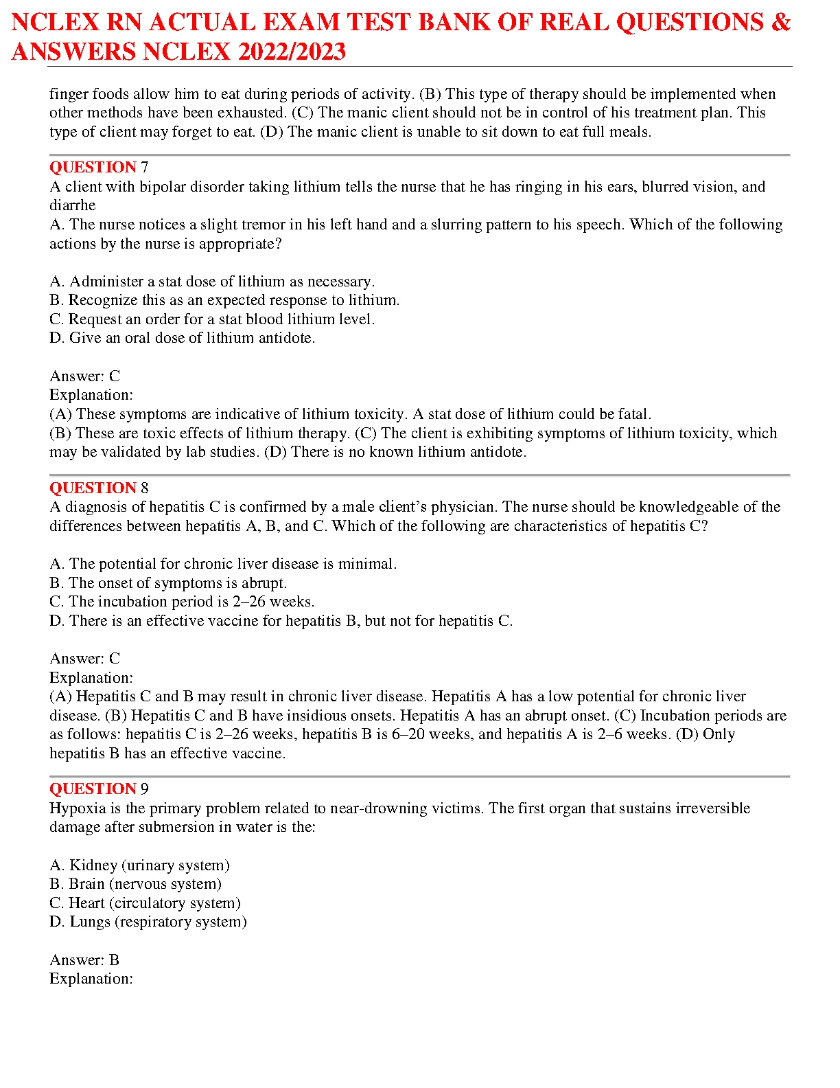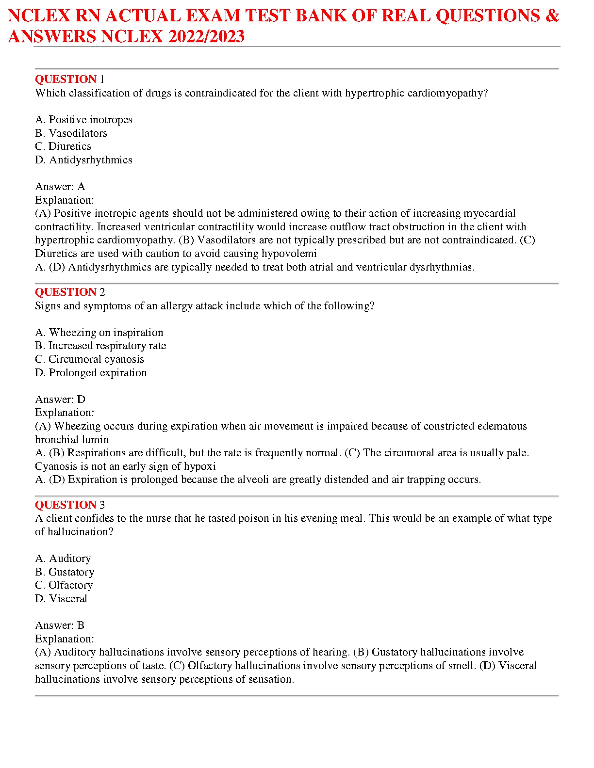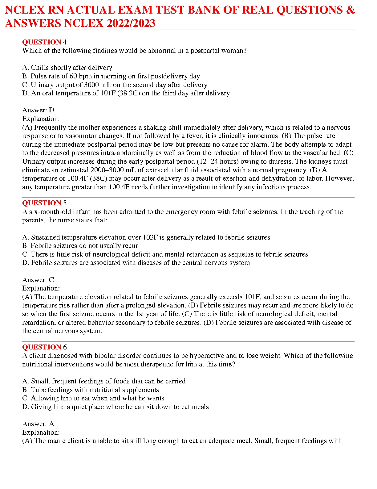 NCLEX RN ACTUAL EXAM TEST BANK OF REAL QUESTIONS & ANSWERS NCLEX 2022/2023