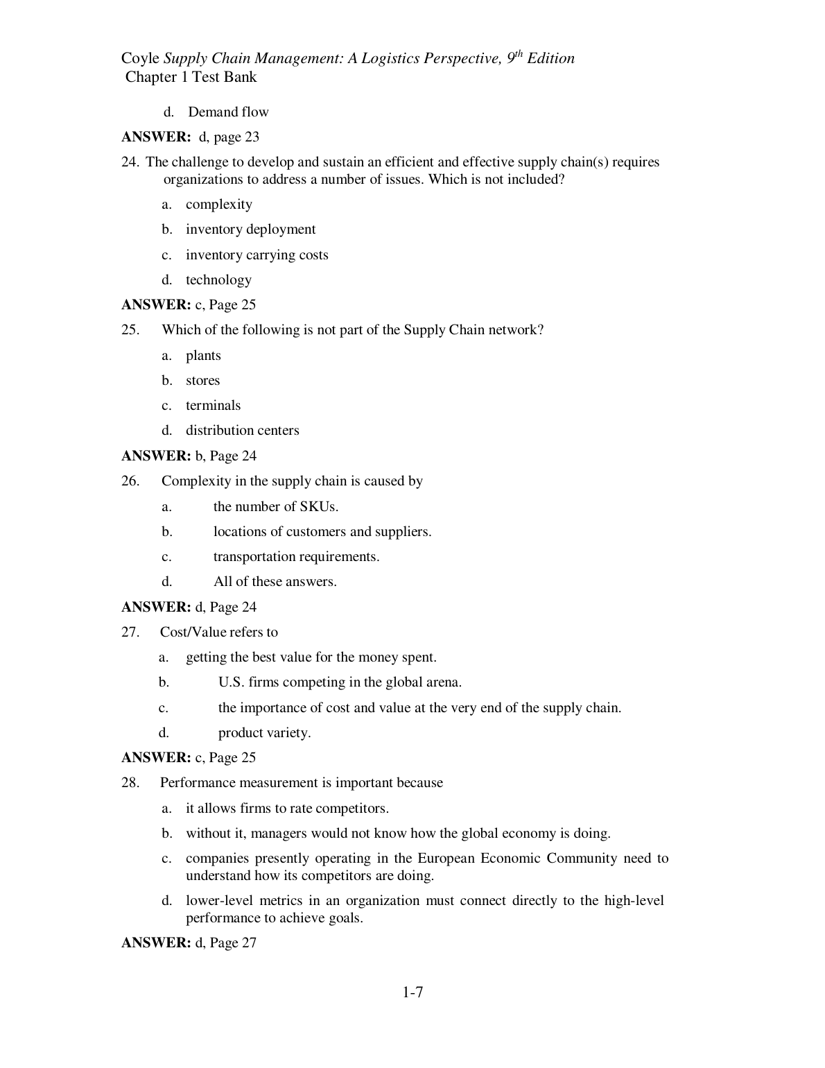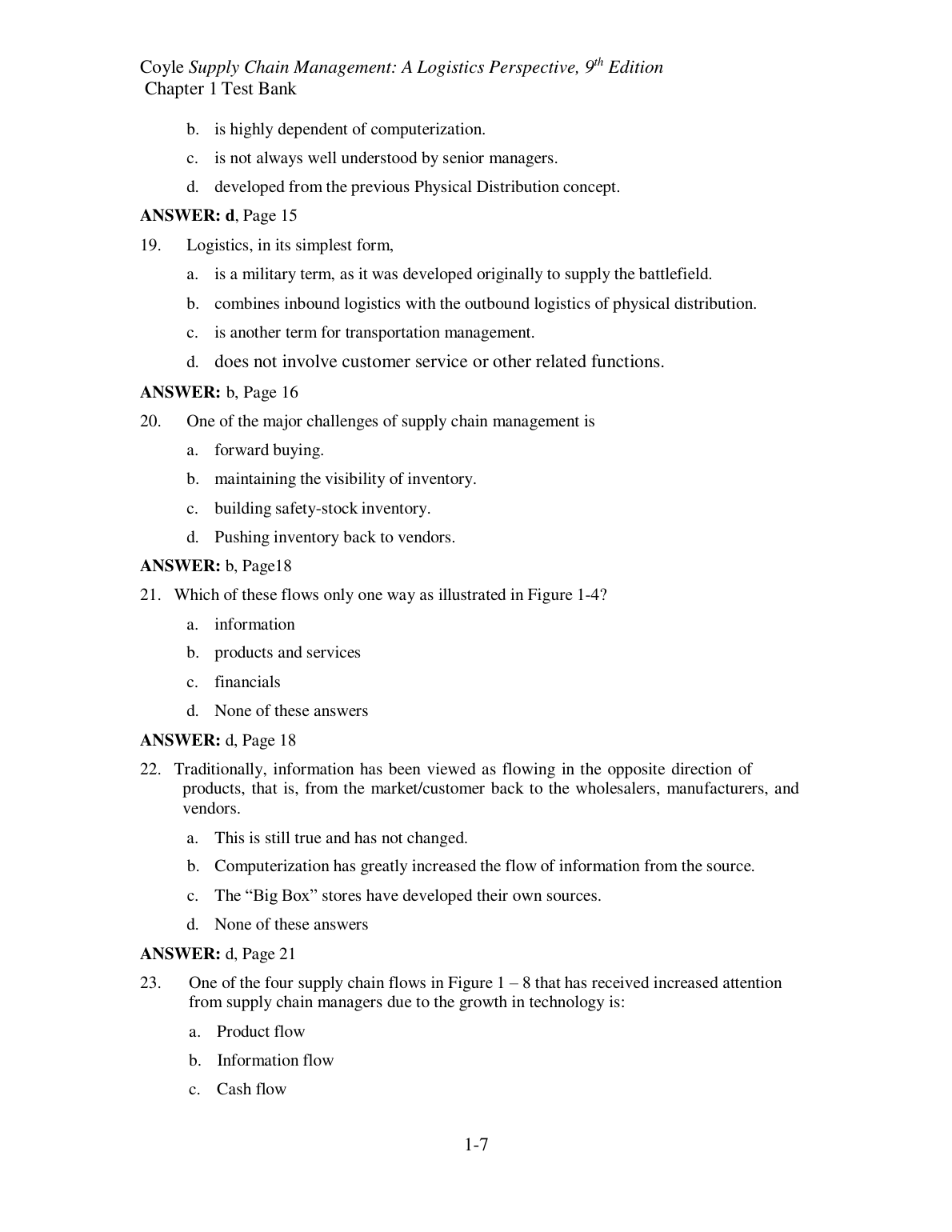 Coyle's Supply Chain Management: A Logistics Perspective, 9 th Edition Test Bank
