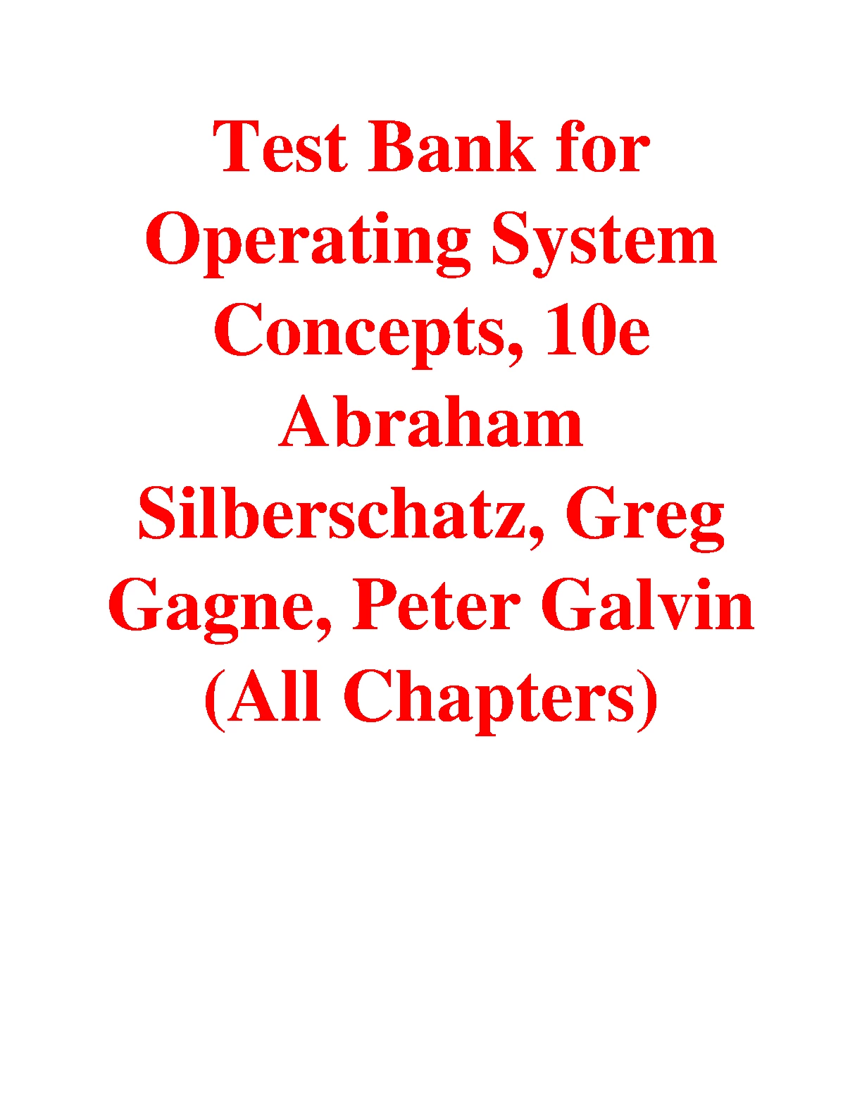 Test Bank for Operating System Concepts, 10TH EDITION BY Abraham Silberschatz, Greg Gagne, Peter Galvin (All Chapters)