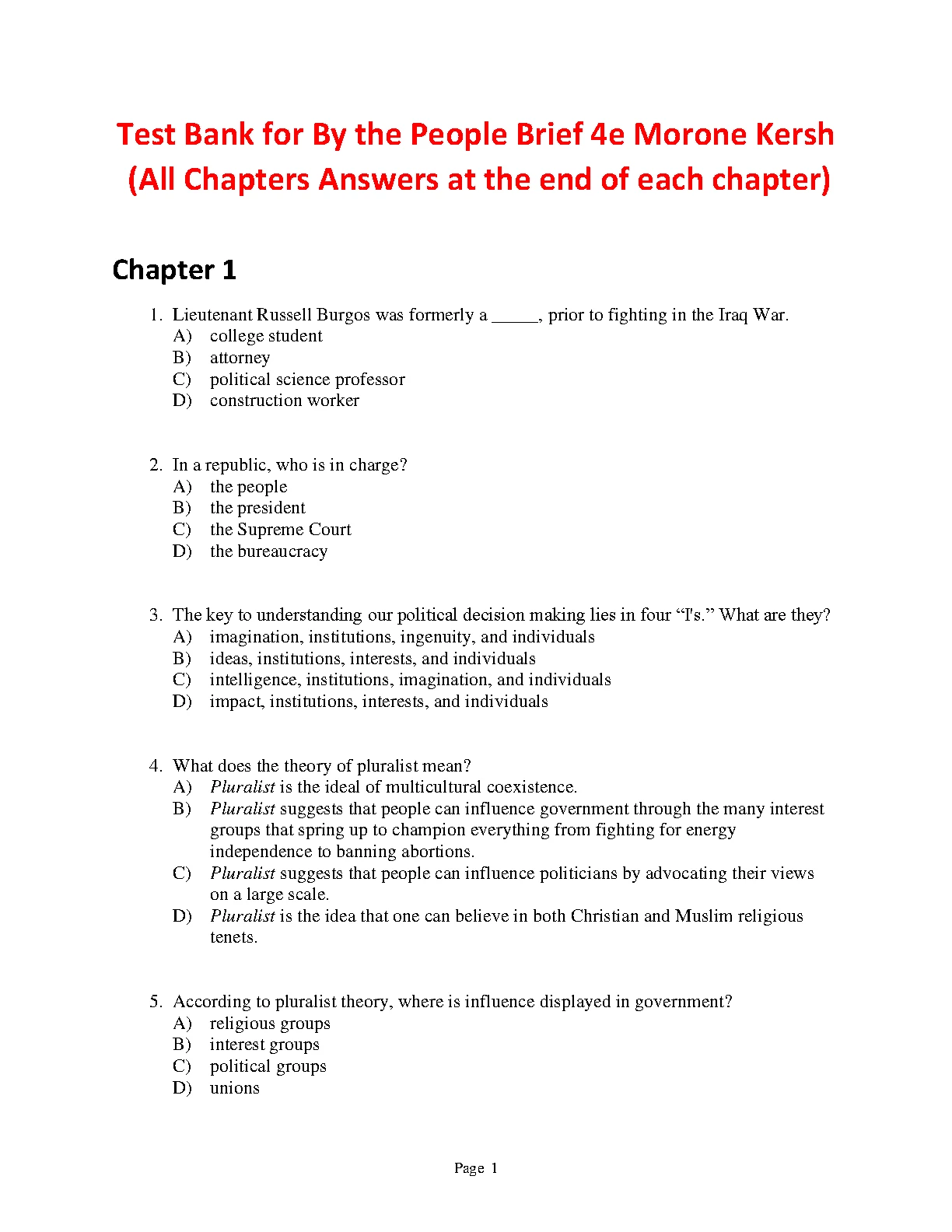 Test Bank for By the People Brief 4TH EDITION BY Morone Kersh (All Chapters Answers at the end of each chapter)