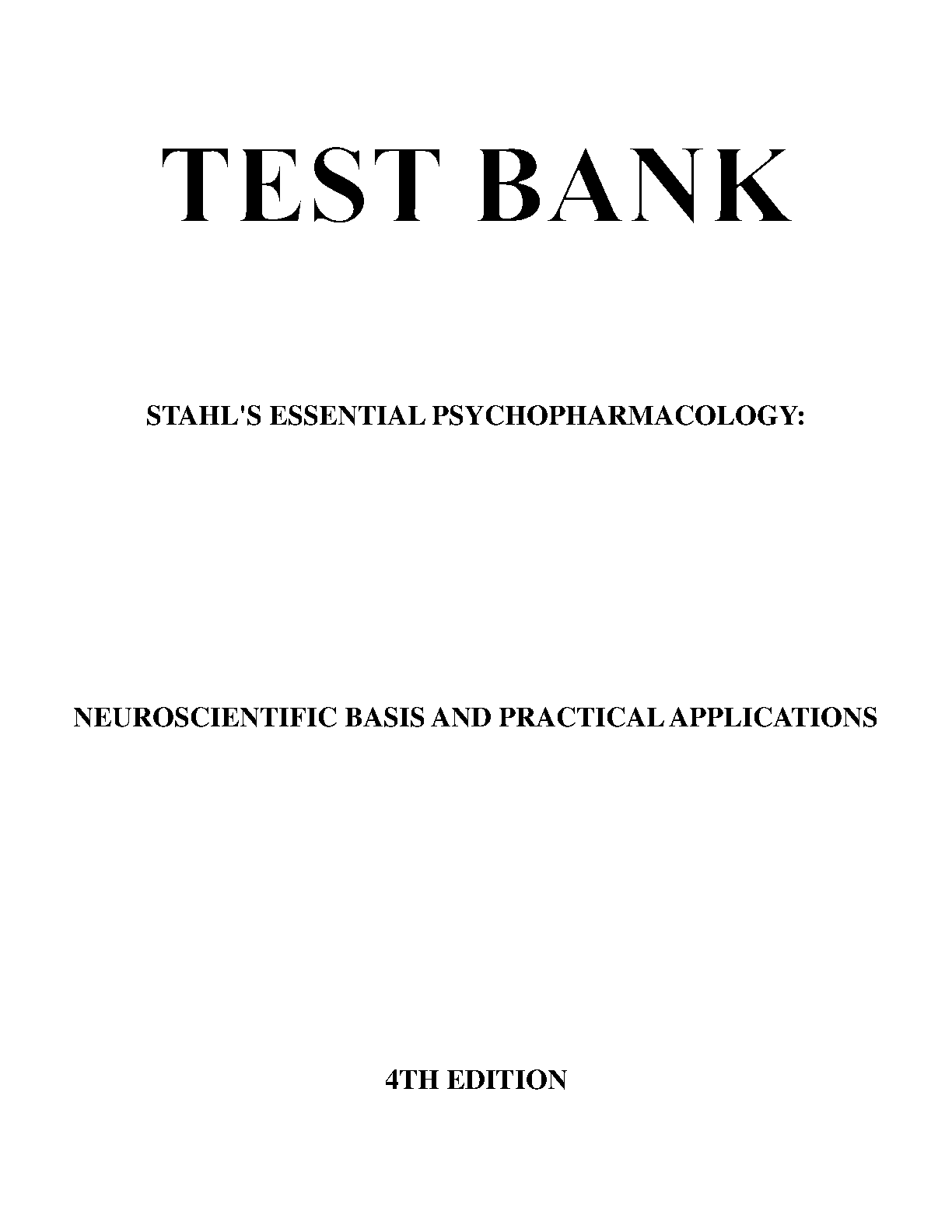TEST BANK: STAHL'S ESSENTIAL PSYCHOPHARMACOLOGY: NEUROSCIENTIFIC BASIS AND PRACTICAL APPLICATIONS 4TH EDITION