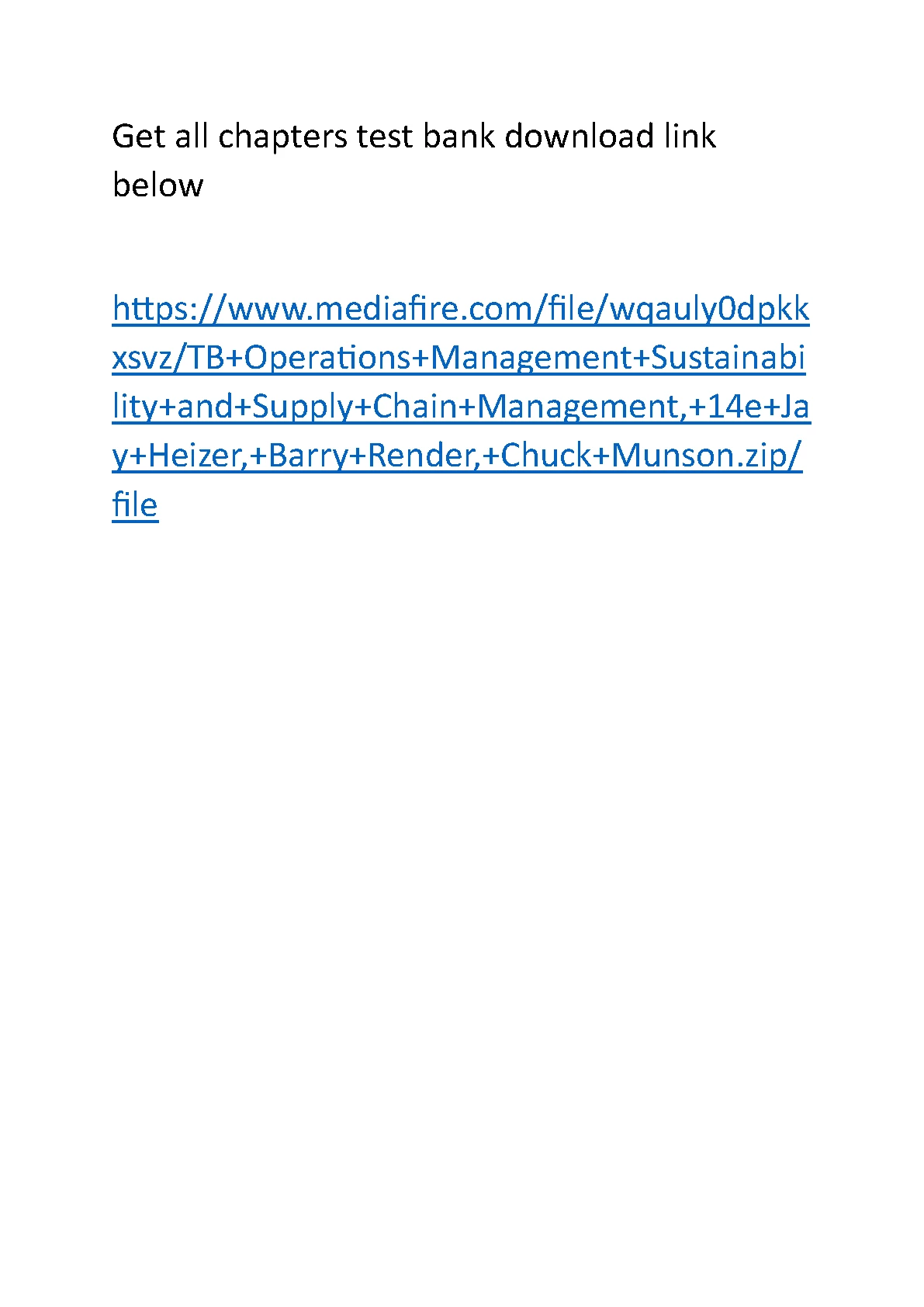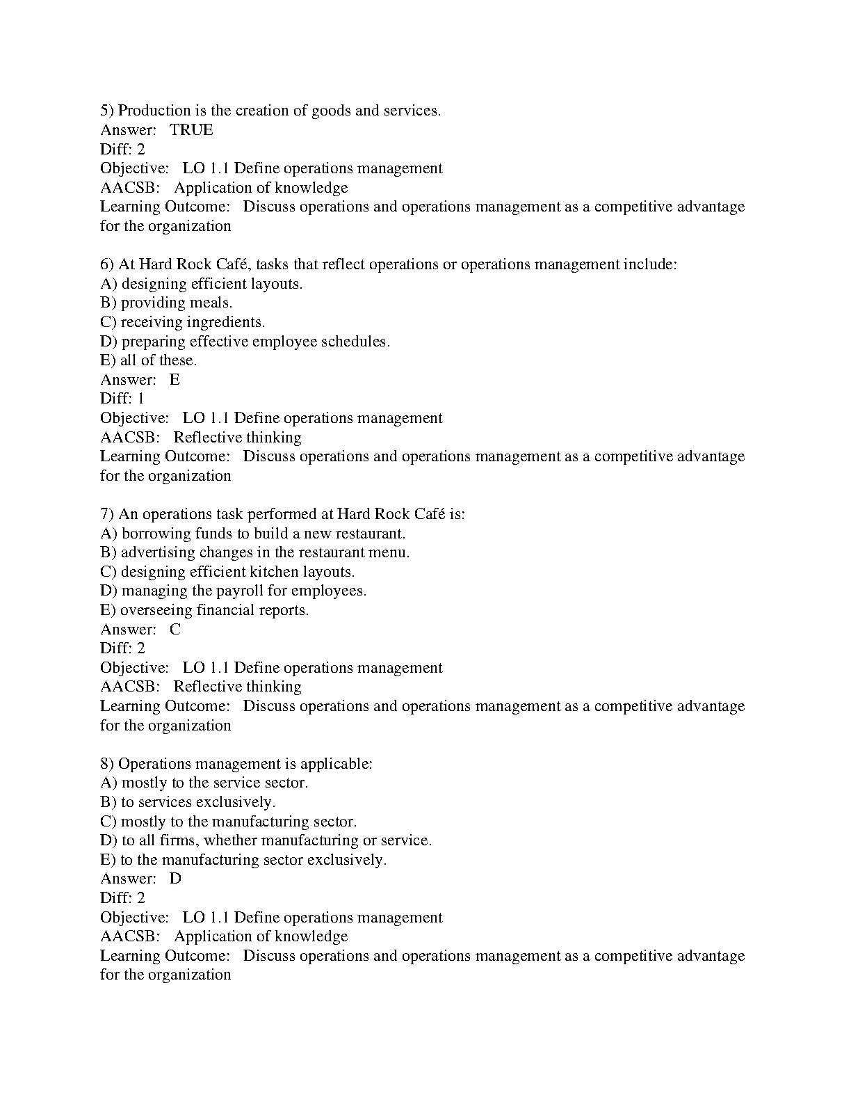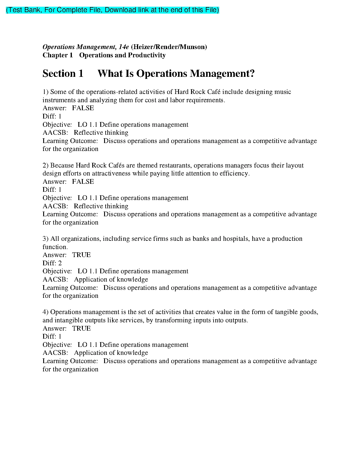 TEST BANK FOR Operations Management, 14TH EDITION (BY Heizer/Render/Munson)