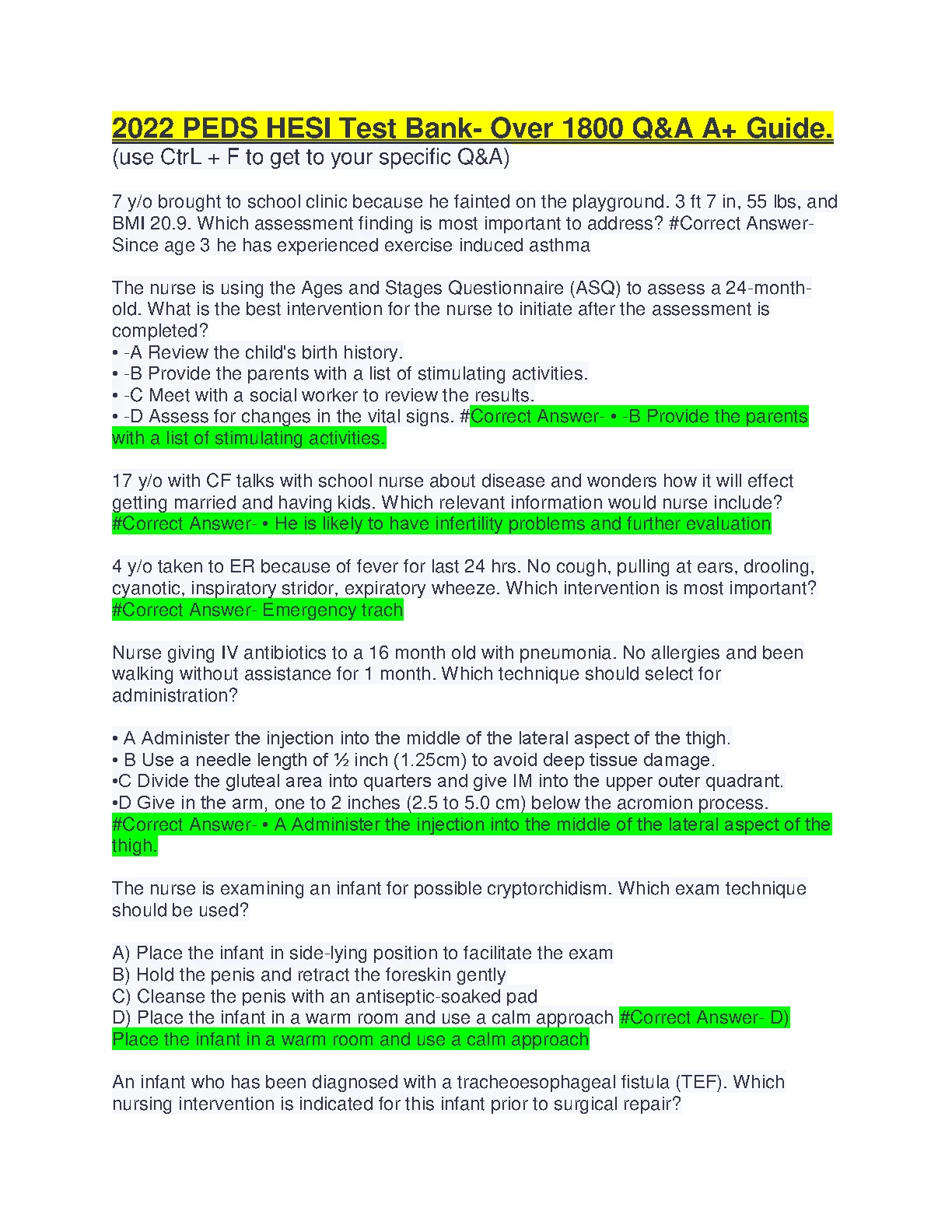 2022 PEDS HESI Test Bank- Over 1800 Q&A A+ Guide. BRAND NEW!!!. DOWNLOAD on www.hackedexams.com INSTANTLY.