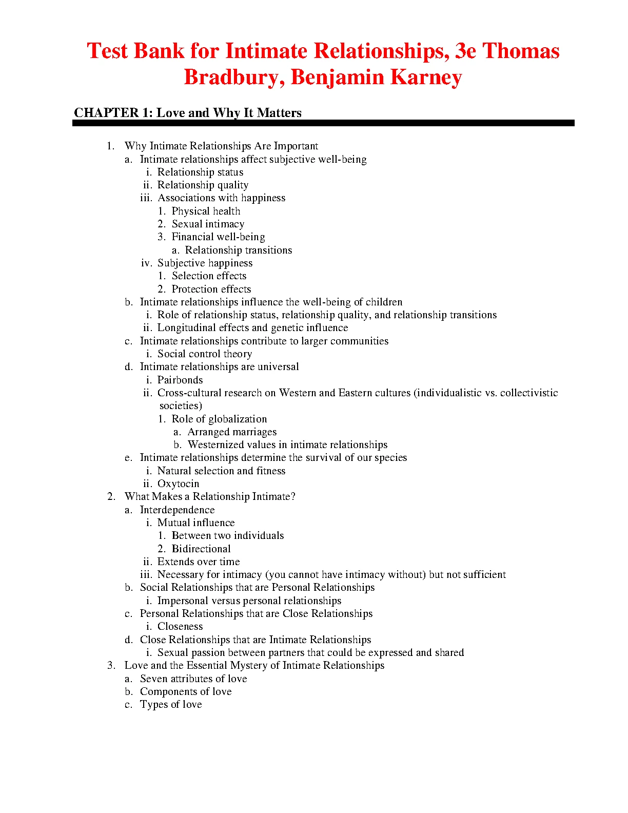 Test Bank for Intimate Relationships, 3RD EDITION BY Thomas Bradbury, Benjamin Karney