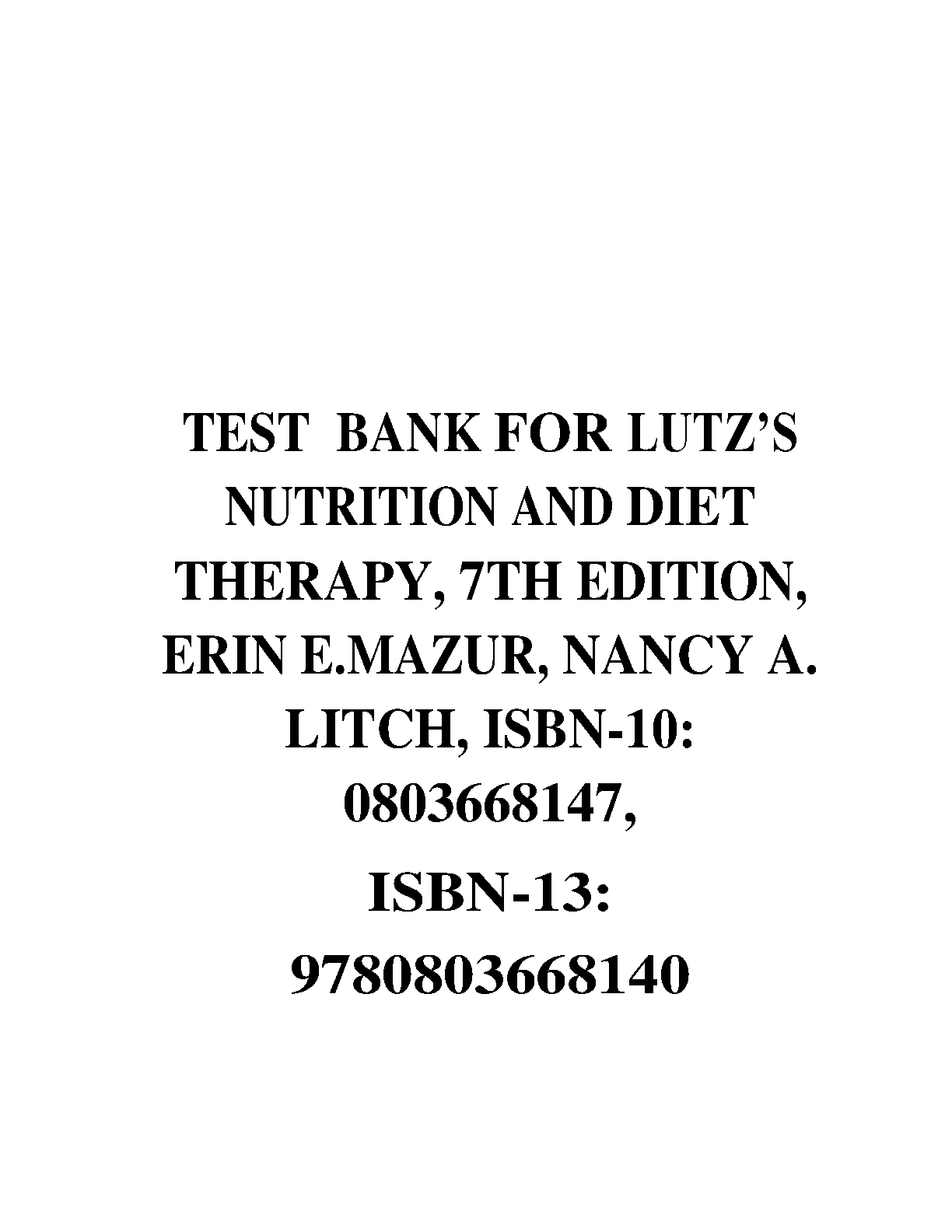 TEST BANK FOR LUTZ’S NUTRITION AND DIET THERAPY, 7TH EDITION, ERIN E.MAZUR, NANCY A. LITCH