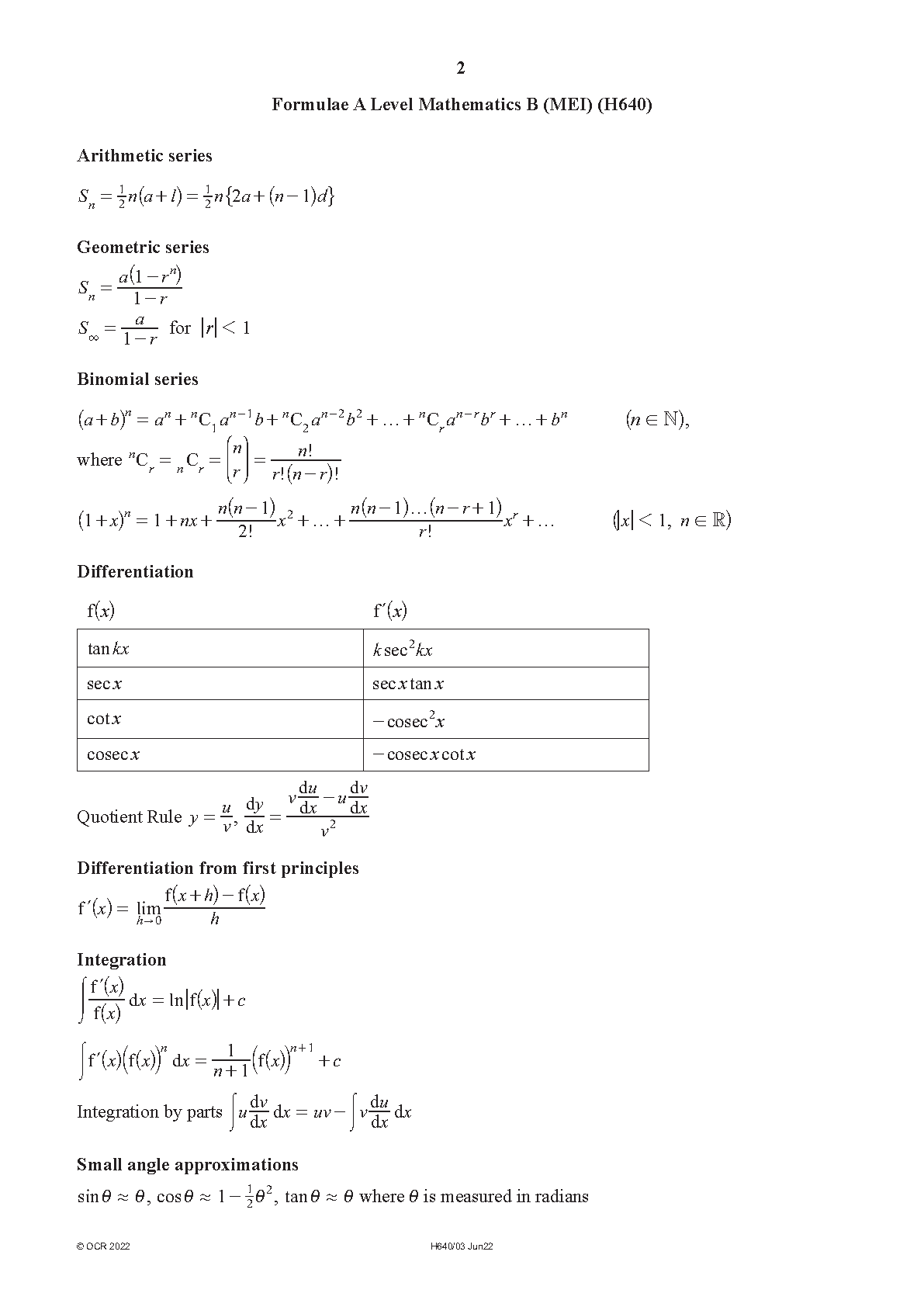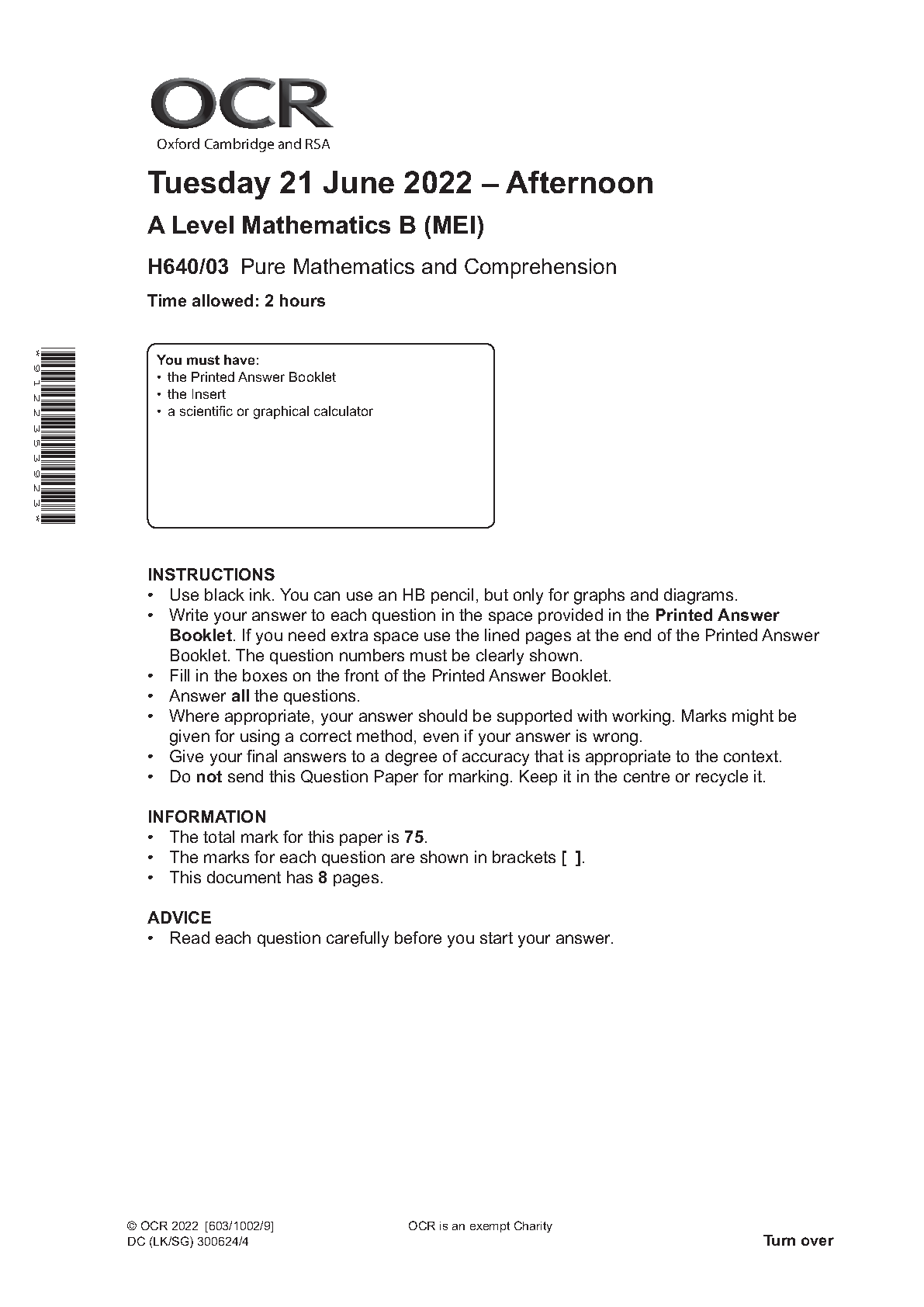OCR A LEVEL MATHEMATICS B PAPER 3 JUNE 2022 QUESTION PAPER (H640/03: Pure Mathematics and Comprehension)