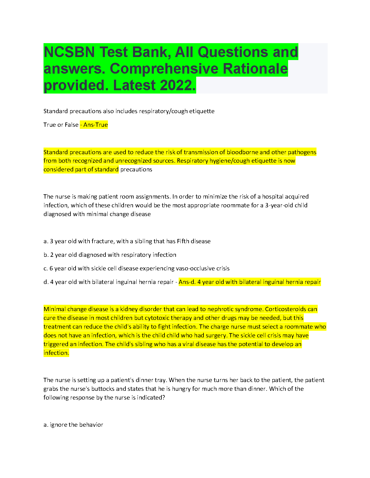 NCSBN Test Bank, All Questions and Answers. Comprehensive Rationale Provided LATEST UPDATE FOR 2023/2024. DOWNLOAD on www.hackedexams.com INSTANTLY.