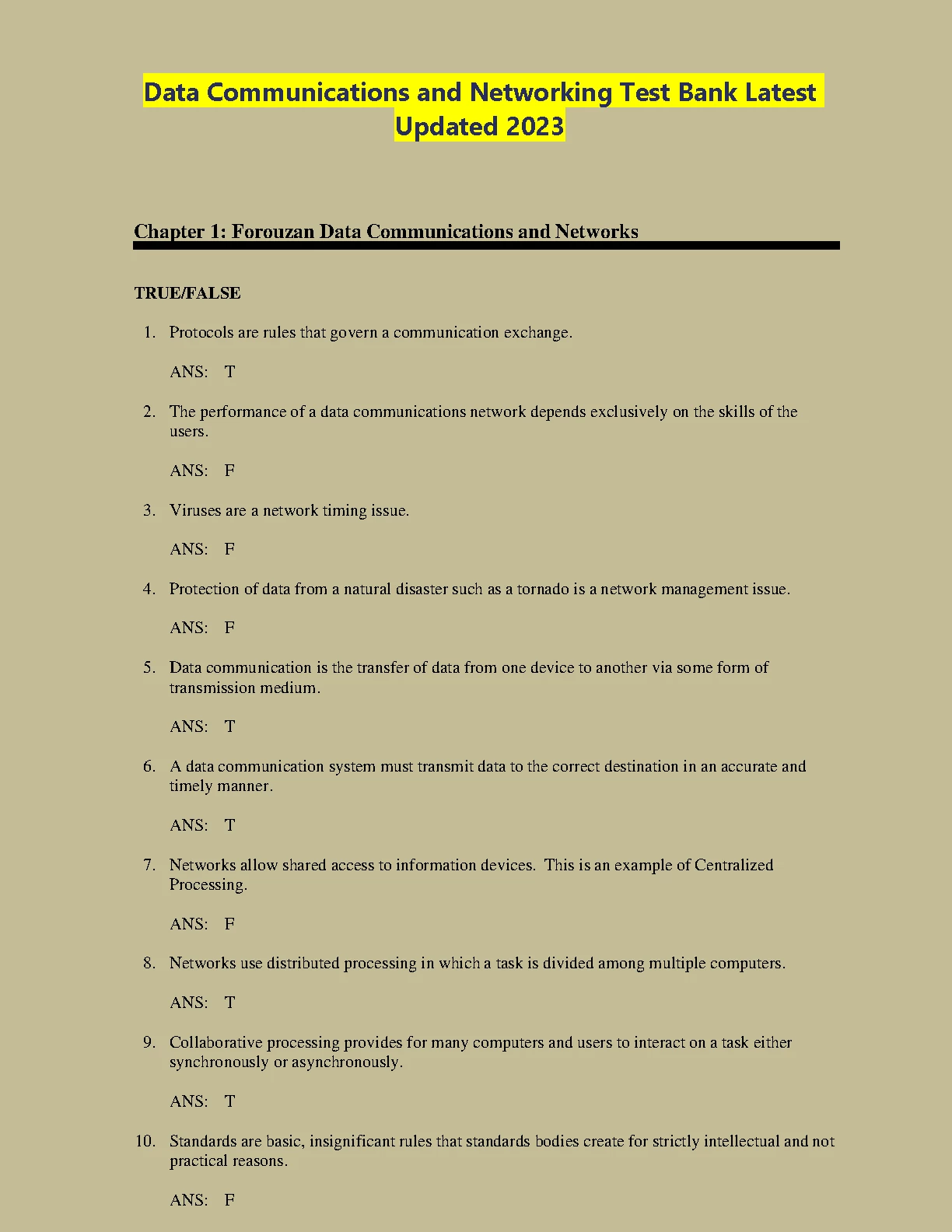 TEST BANK FOR Data Communications and Networking (McGraw-Hill Forouzan Networking) by FOROUZAN